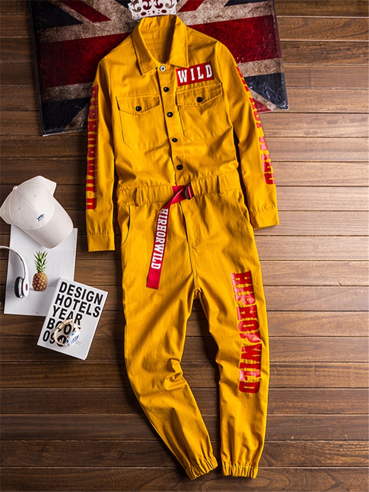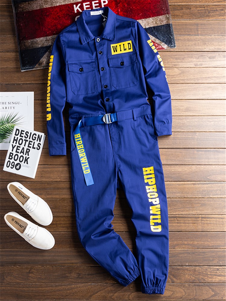 衣身印花设计,个性十足,连体衣款式,穿着更舒适,情侣款,男女都可以驾驭,胸前字母印花,个性时尚,工装版型,穿着帅气有型。