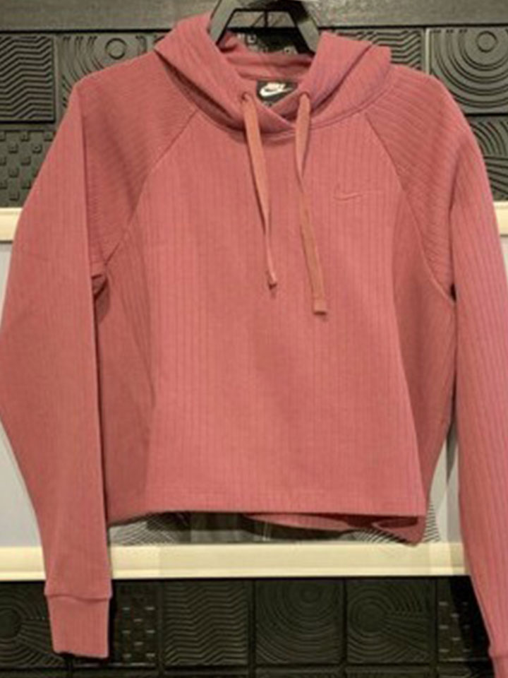 衣服整体廓形是略宽松的H型,对体型包容度较高,且显得前面一整片条纹更加简约整体。甜美鲜亮的红色,宽松连帽设计,休闲百搭。