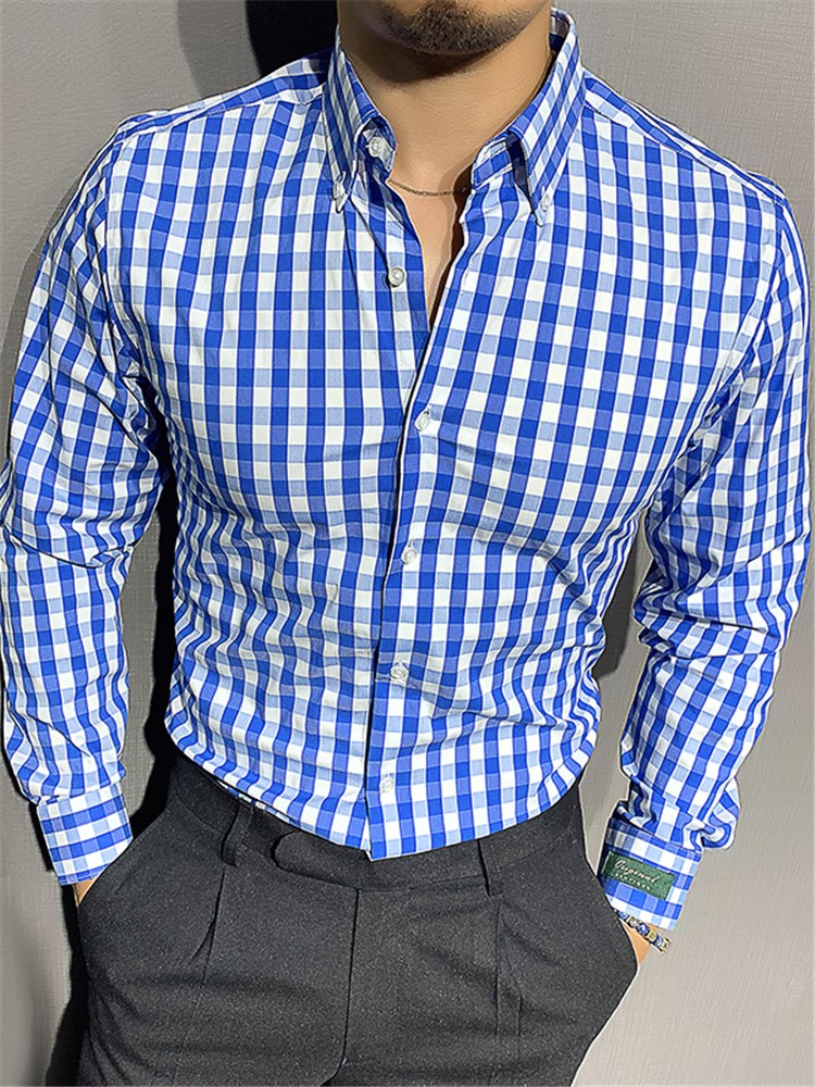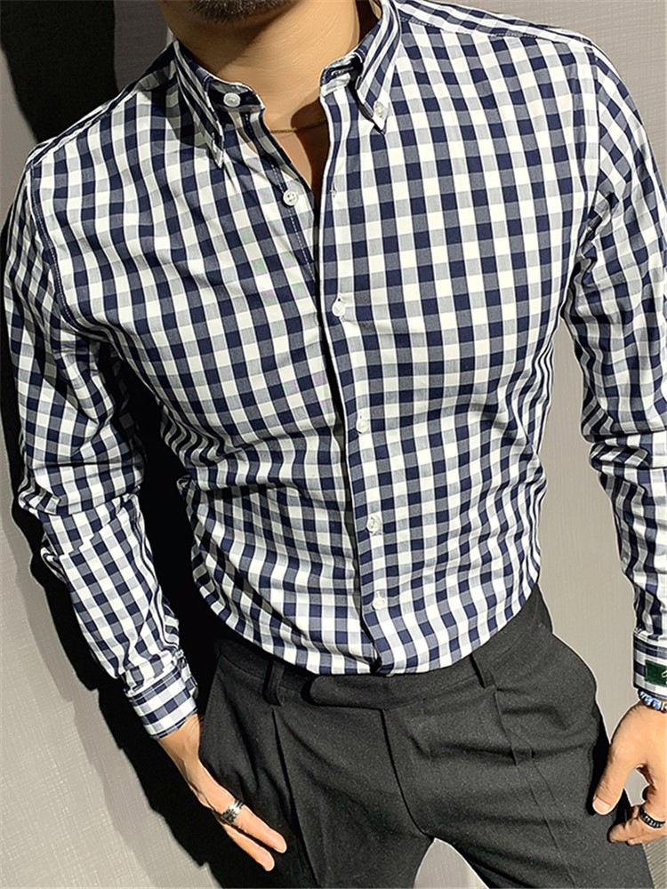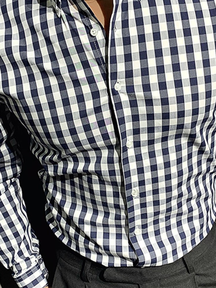 衬衣版型,穿着挺括有型,长袖设计,修饰手臂曲线,商务风格,适合各种场合,修身版型,凸显身材曲线,经典格纹元素,复古时尚,衬衫翻领,修饰颈部线条,修身版型,展现完美身材,绅士风格,彰显男士魅力。