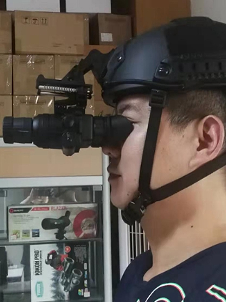 奥尔法推出的这款头戴式红外微光夜视仪采用了1.3CCD低照度作为增像管,透过黑白LCD观景窗来观察,景象效果比传统夜视镜的滤光荧光屏更加清晰。同时其具有50mm超大口径,能够保证更大的透光率,并且其支持6倍/8倍的超大放大倍率,保证了更远的观测距离,与更清晰的观测效果。