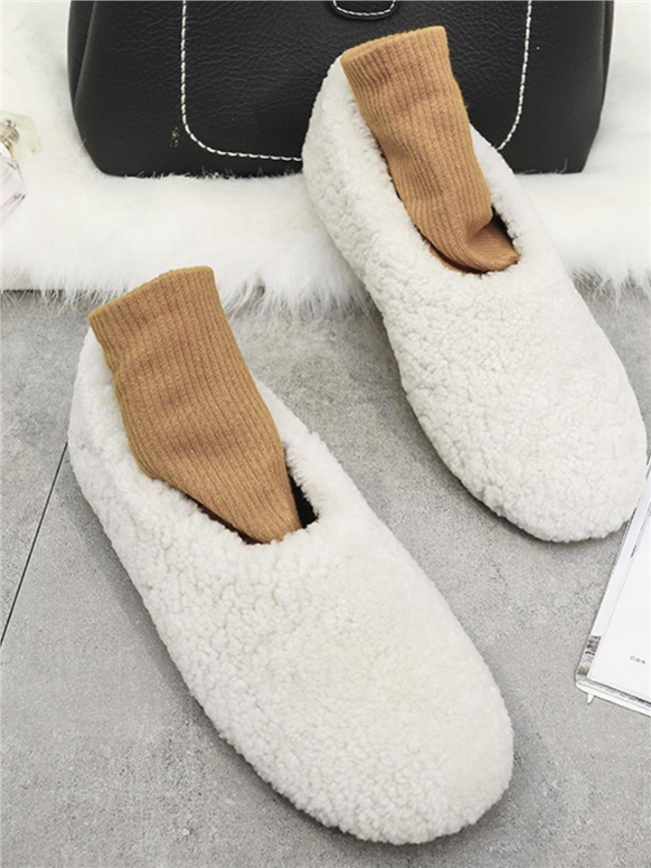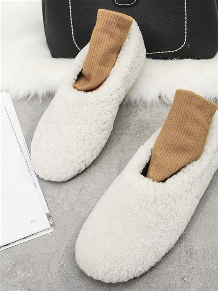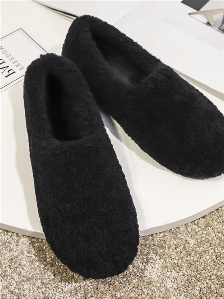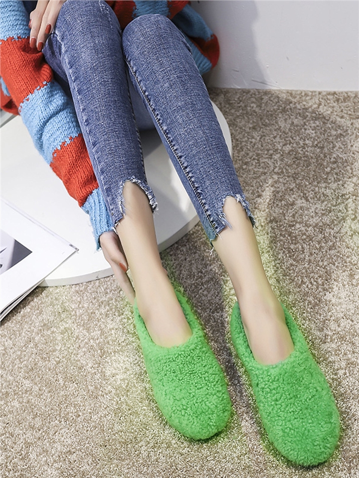 平底设计,穿着舒适自在。卷边设计,丰富视觉效果。毛绒豆豆鞋,你的温柔霸占我的脚。