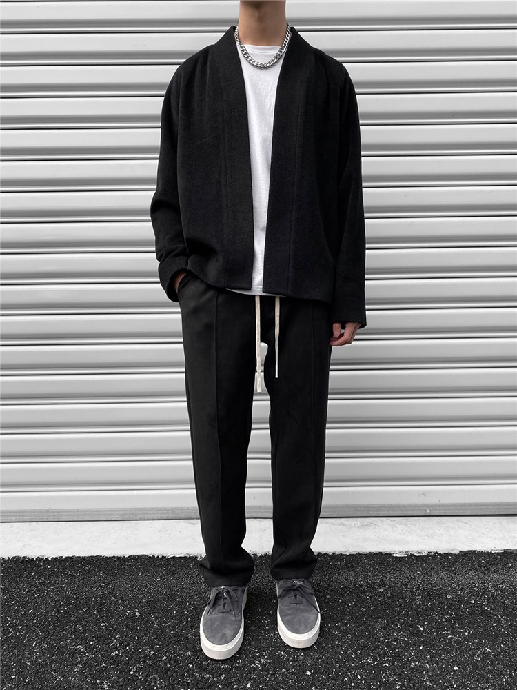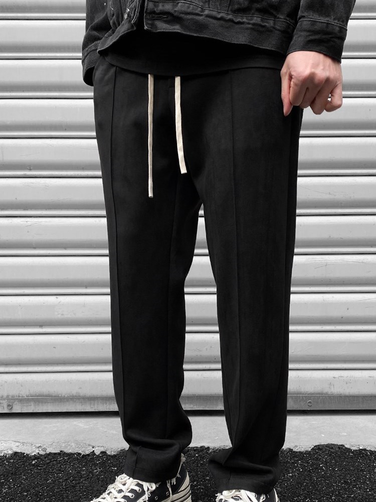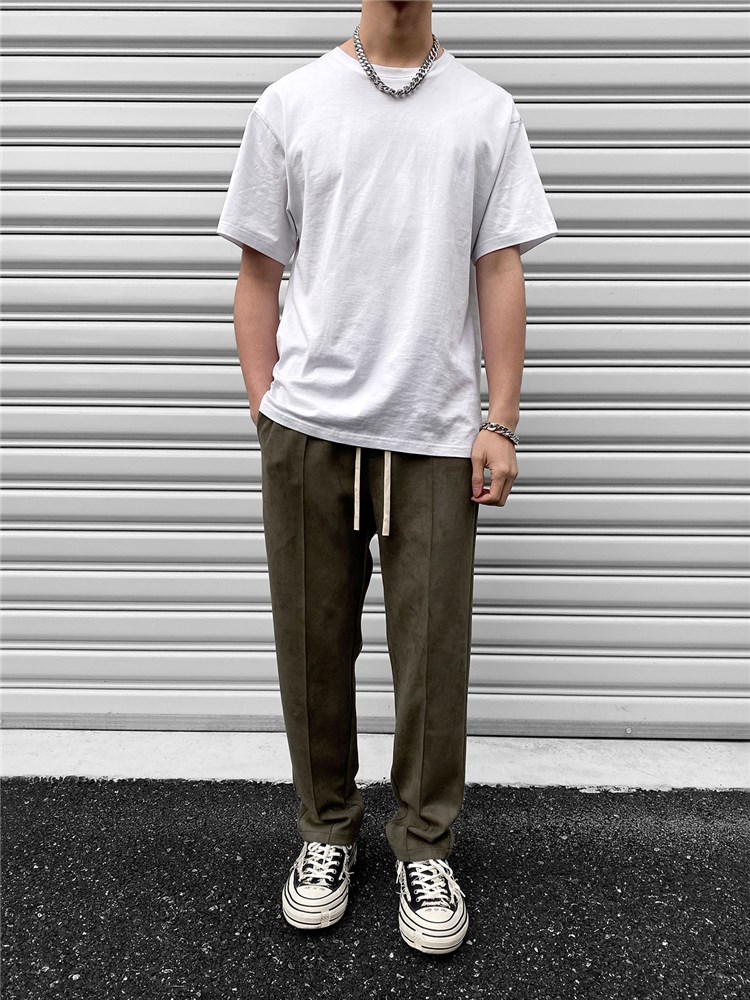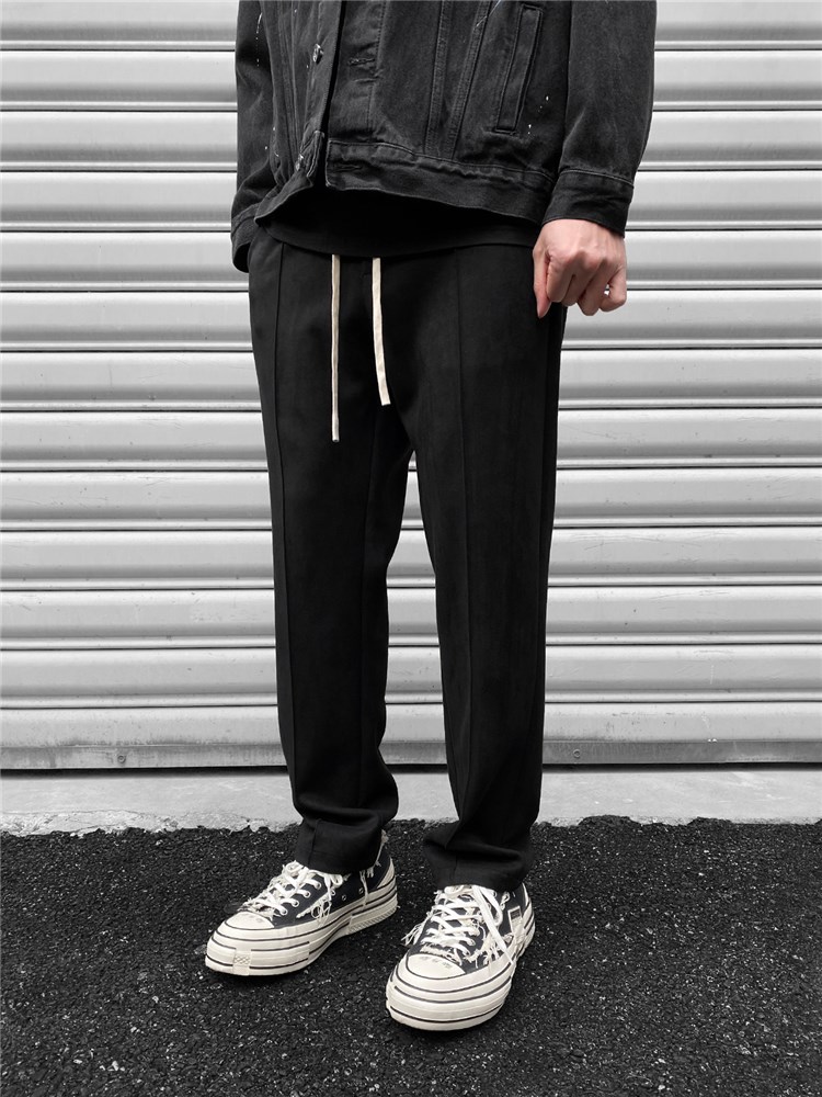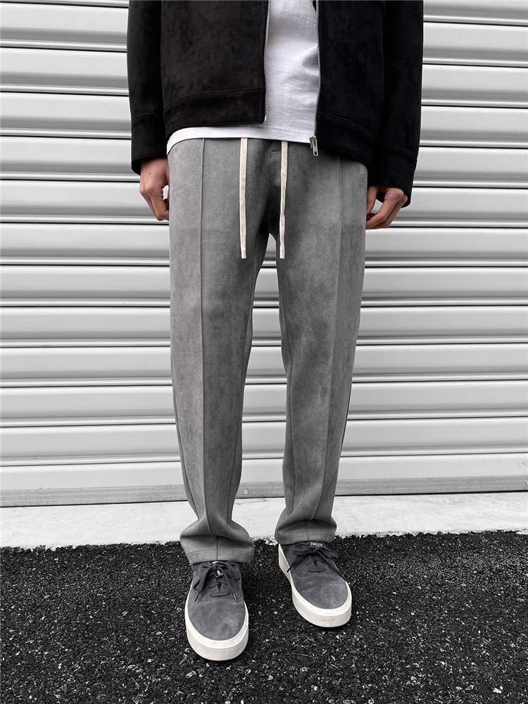 纯色的色调,简约又百搭,麂皮绒面料,舒适又保暖,长裤版型,修饰腿部线条。