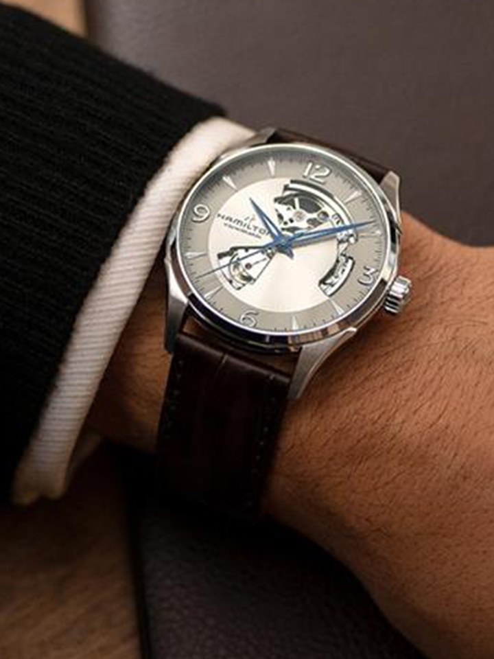 经典三针设计可夜显,精美背透,更有层次感和立体质感,并且可观看机芯运转。