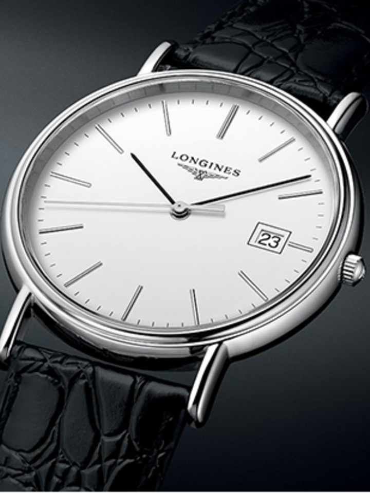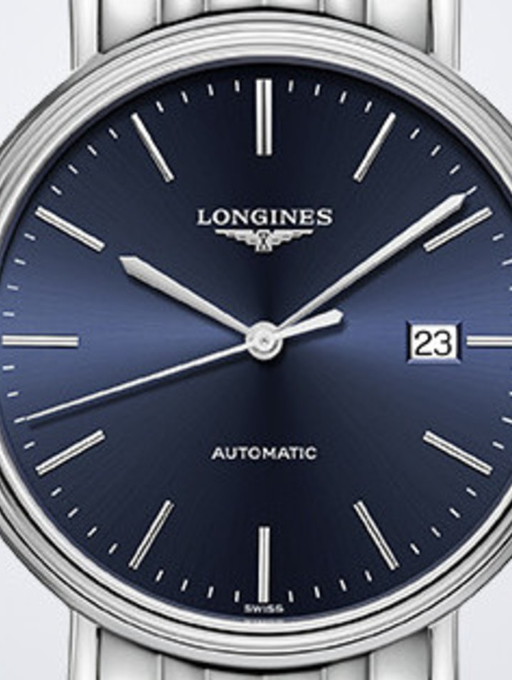 内置自动机械机芯的浪琴机械手表,大气简约的表盘搭配细腻打磨的银色表带,条形刻度表盘上带有日历小窗,款式经典百搭,无论搭配商务正装,还是休闲服饰,都透露出绅士魅力。