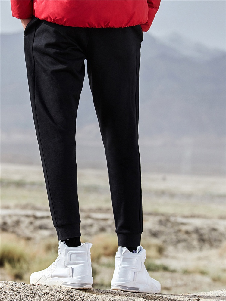 采用毛圈布棉料,巧搭罗纹裤管口。内接缝拼接设计增强舒适度。白色条纹元素的融入,与黑色的衣身形成鲜明。