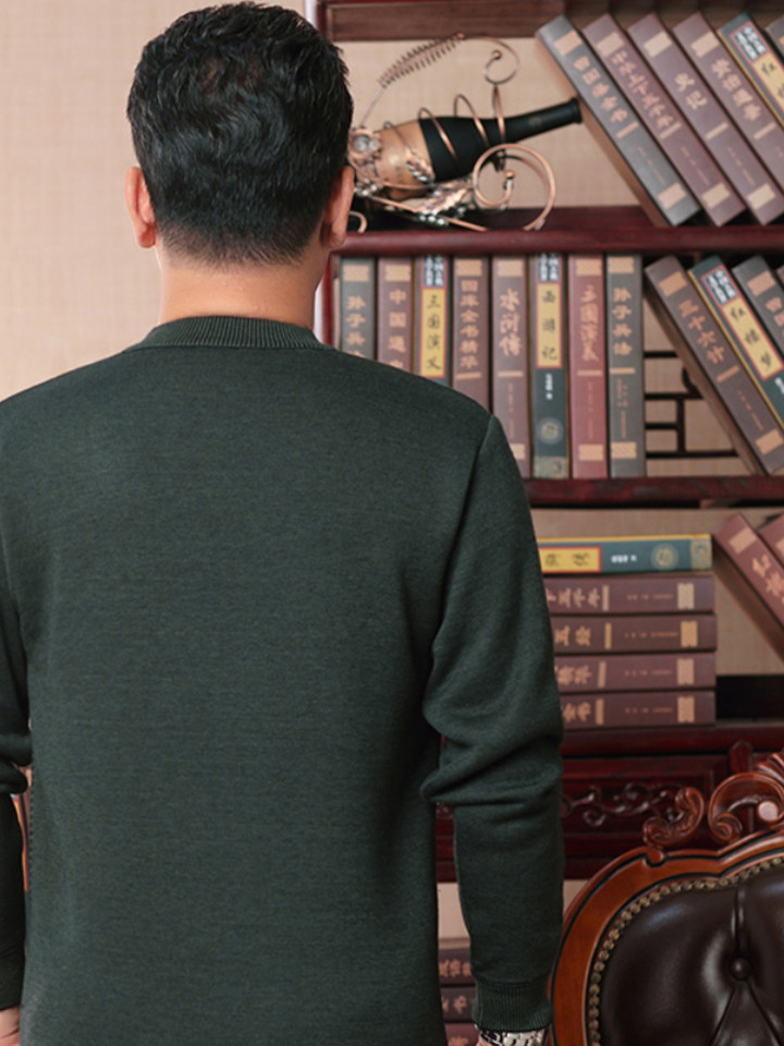 半高领的设计,穿着能够修饰脖颈线条!而半开襟的样式,穿脱非常的方便!简约的版型,衬得人很是慈祥的感觉!