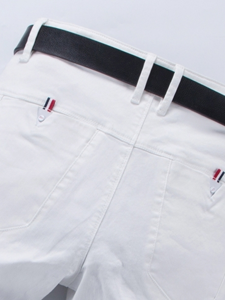 棉质面料,柔软舒适,裤腿经过猫须设计,炫彩不花哨,最in潮流,让你走在时尚前沿,直筒修身版型更是利落,上身凸显身材精神倍增走线,铆钉等细节处理更是到位。