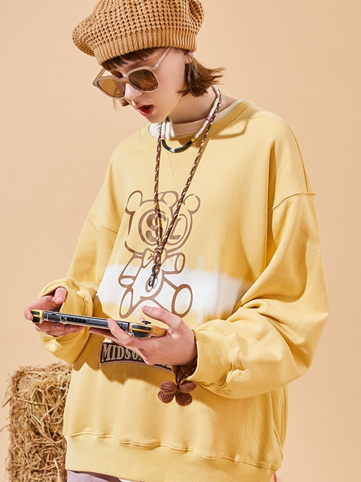精选优质的面料,搭配上宽宽松松的版型,上身后不会有任何束缚感,很舒适,亲肤同时胸前的小熊图案的印花也非常有童趣,谁不想拥有一件糖果色的唯一呢?一起做一个暖暖的甜甜的女孩子吧!
