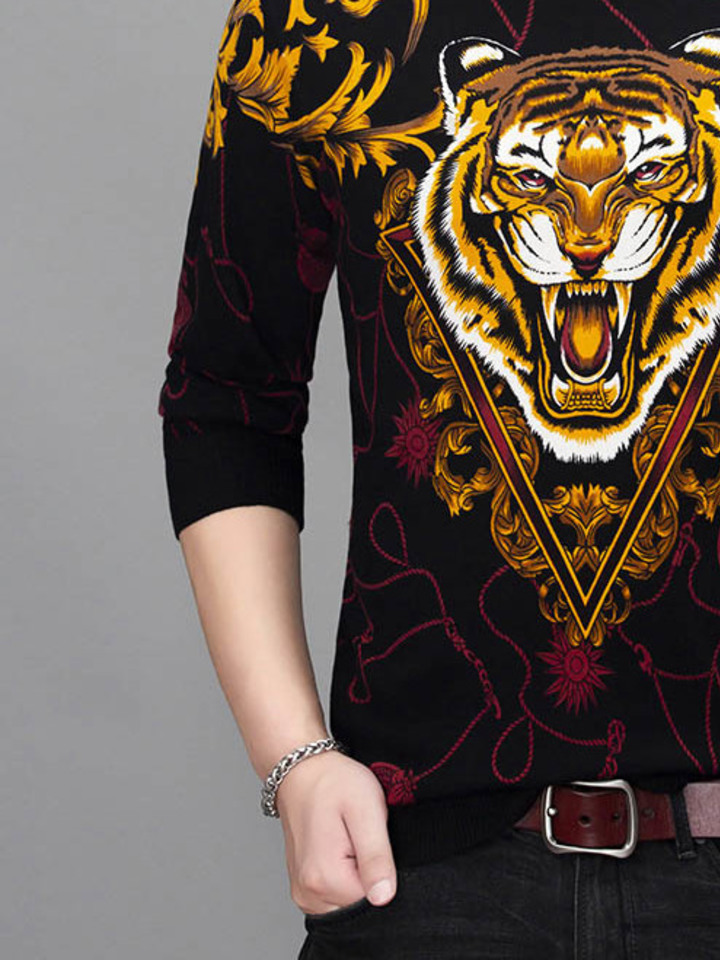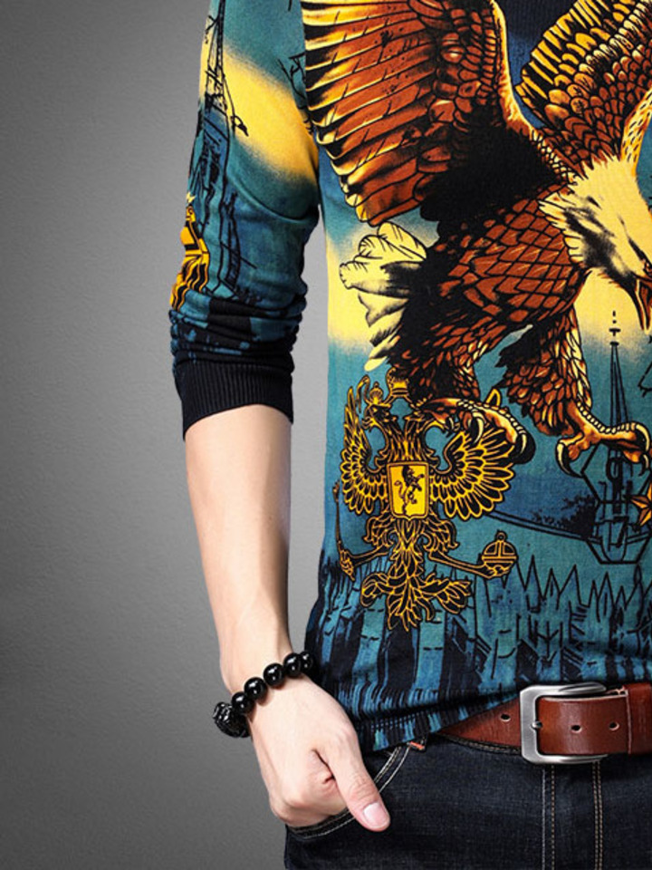 ’荡领设计,温柔动人,拼接弹性束口美观大方,植物印花衬托靓丽皮肤,更加打造复古优雅气息,打底或外穿都十分有范。英伦风时尚潮流印花T恤,精选高端优质面料,优雅大方的版型,个性潮流的图案设计,彰显都市型男魅力。