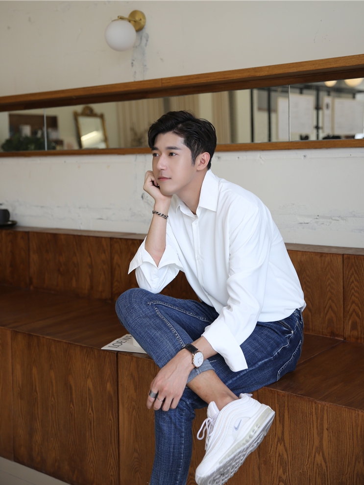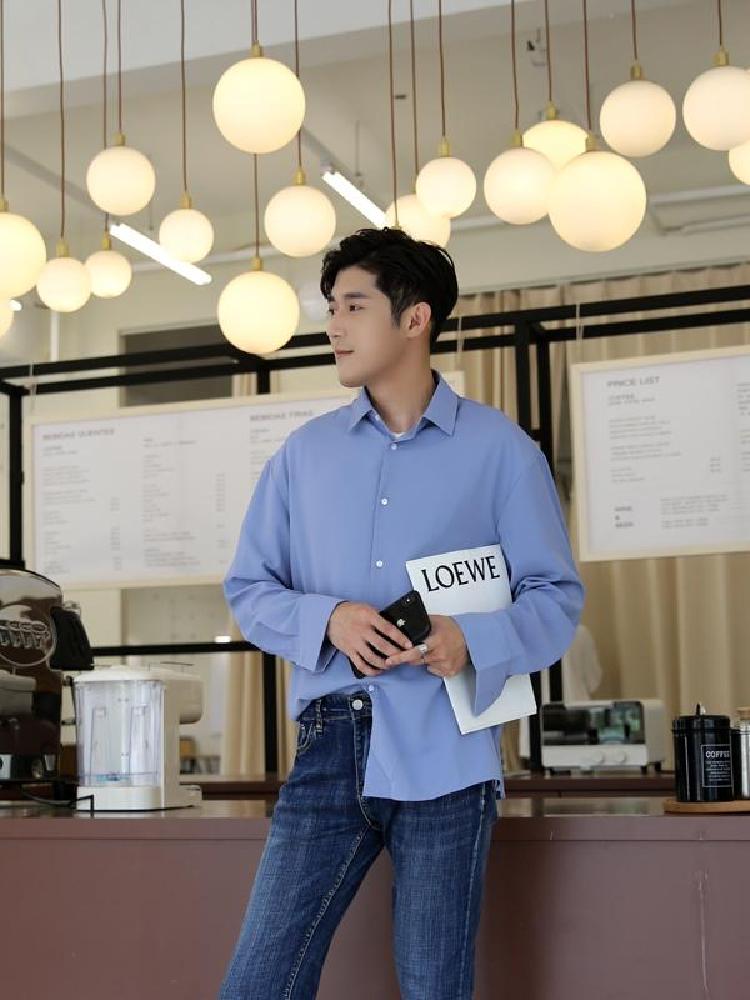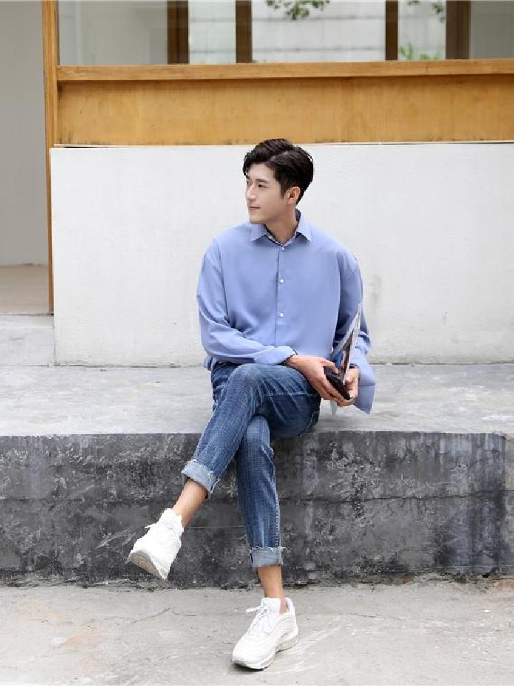 以纯色为主的衬衫,即方便穿着又显得简约大方,纯棉材质穿着舒适,这款衬衫不失为秋季的百搭之选。下身可以选择牛仔裤、休闲裤或是束脚裤搭配,轻松驾驭,鞋子可以选择运动鞋来增加活力感,加上太阳镜点缀,有型有范。