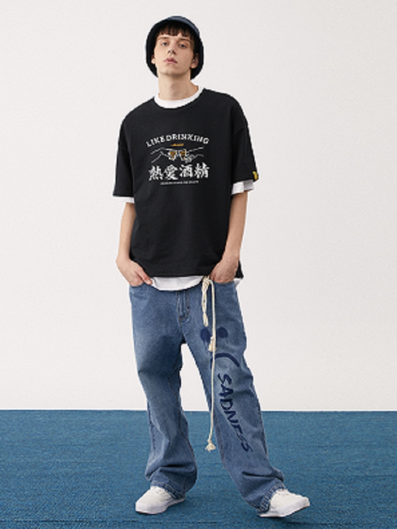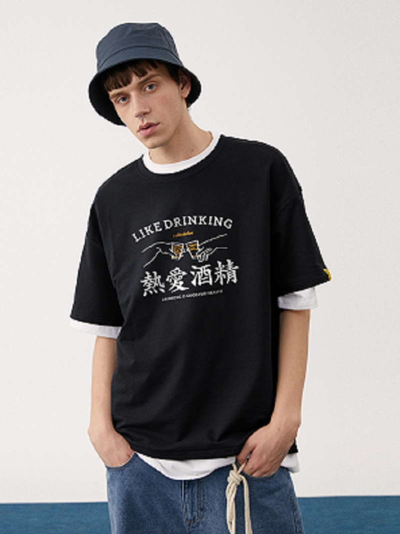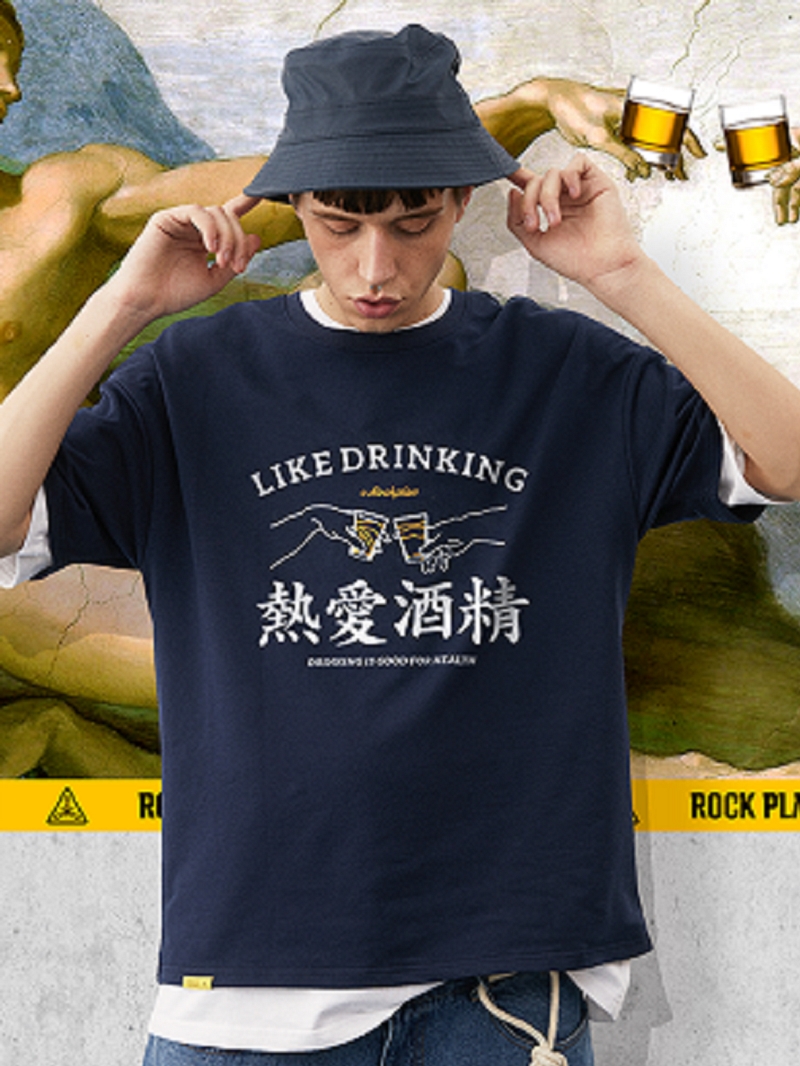宽松T恤,让你轻松驾驭。个性摇滚印花,时尚潮流。英文印花,彰显男士魅力。简约款式,适合各种场合。创意印花设计,个性十足。