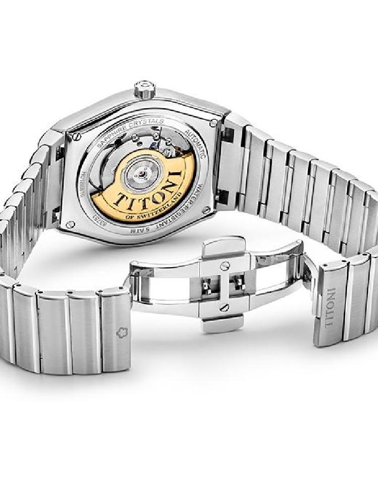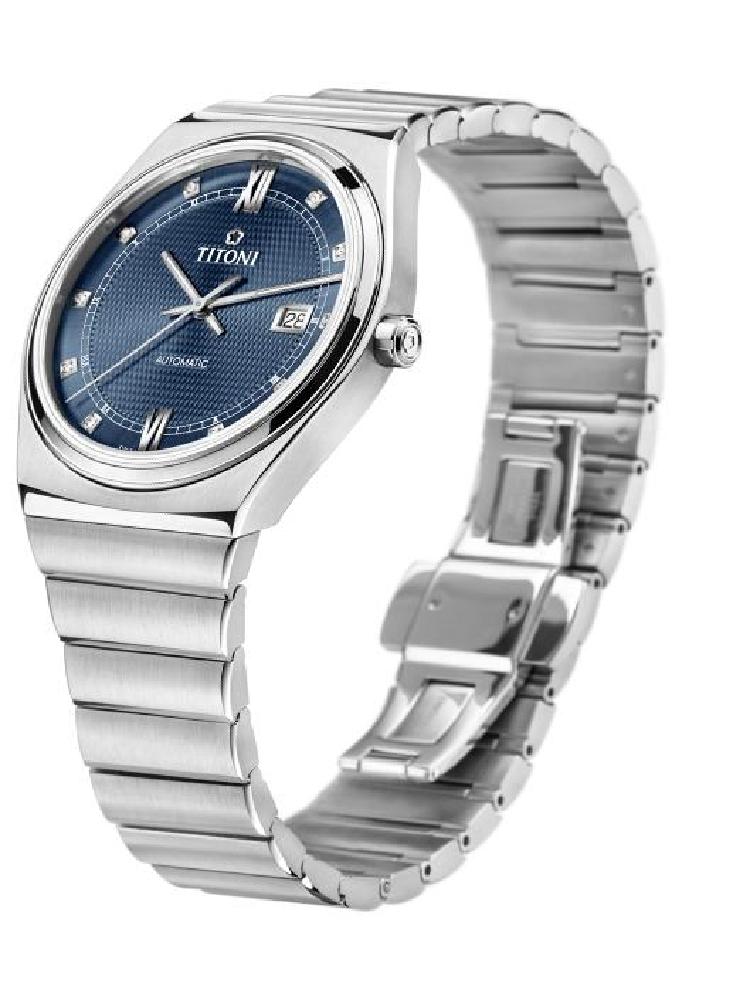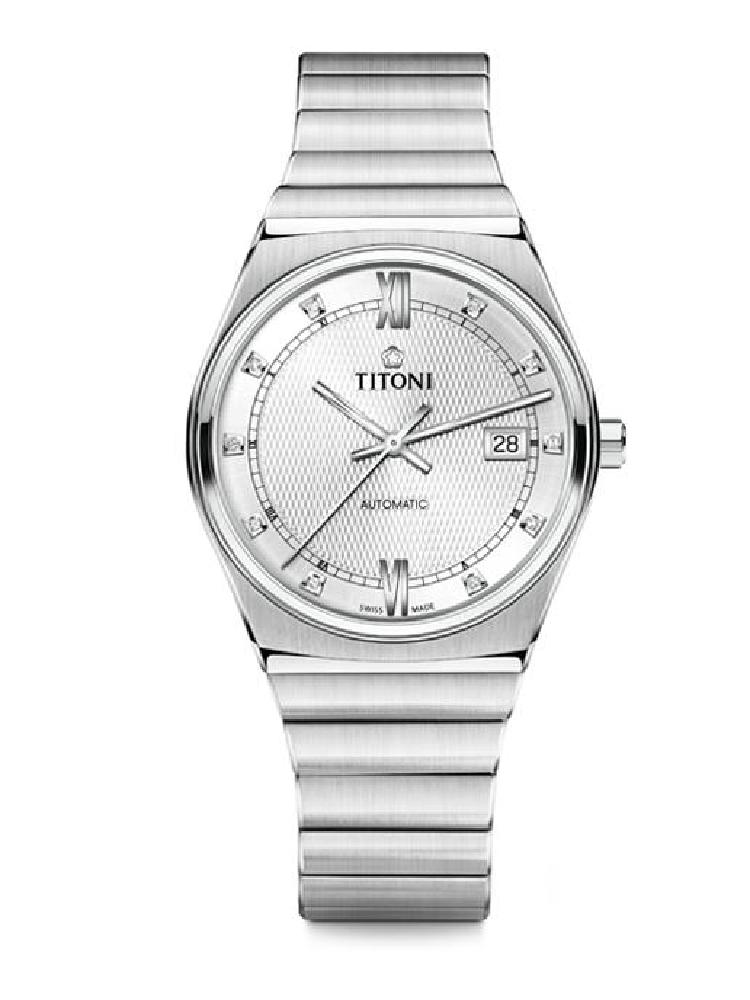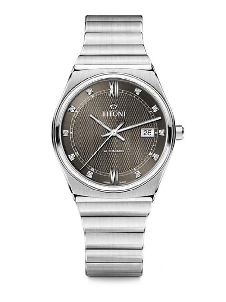 Titoni瑞士梅花表创立于1919年,以“品质第一”为宗旨,凭借严格的制作标准以及优良的品质,获得众多人士喜爱。这款来自该品牌宇宙系列的腕表,刻度、指针以及机芯装饰使用了钻石切割工艺制作,12点以及三点位分别设有星期以及日历窗显,提升实用性。表底盖有宇宙系列标识,彰显品牌细节。
