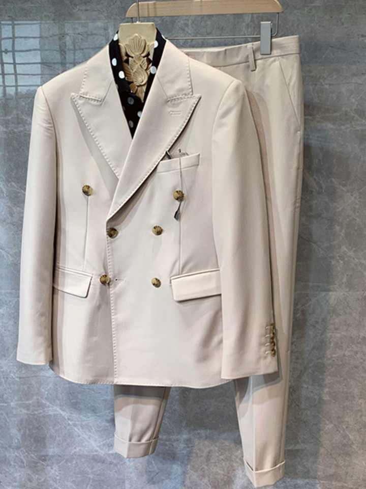 两件套的设计,美观时尚又好搭配,精美的双排扣,很时尚,为服饰带来立体感,双开叉,优雅帅气。
