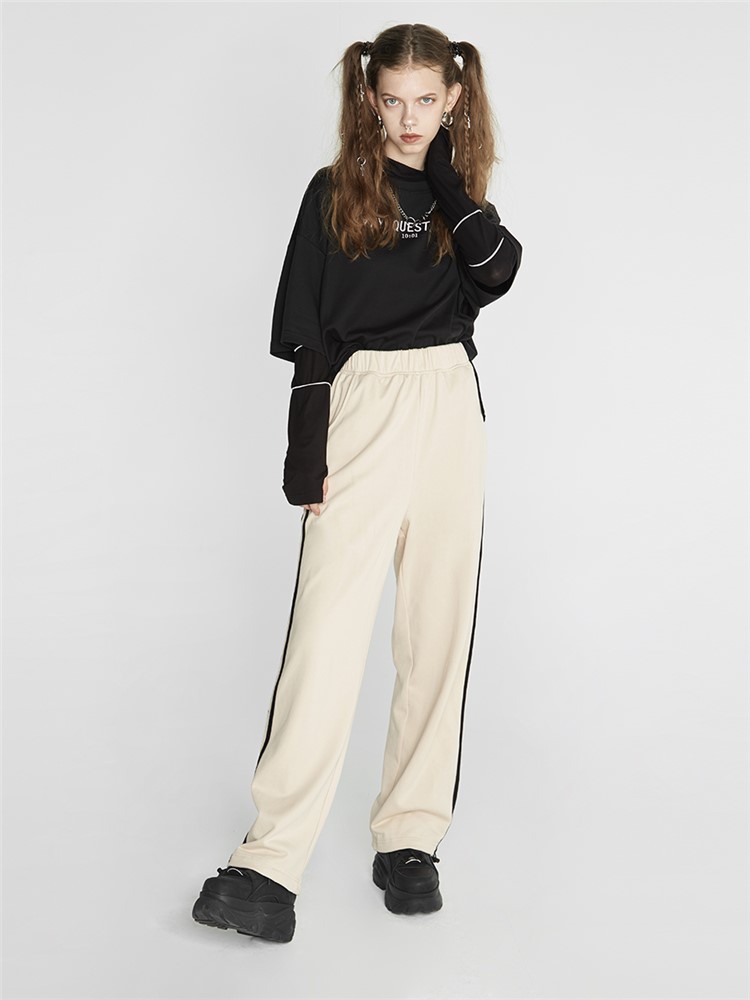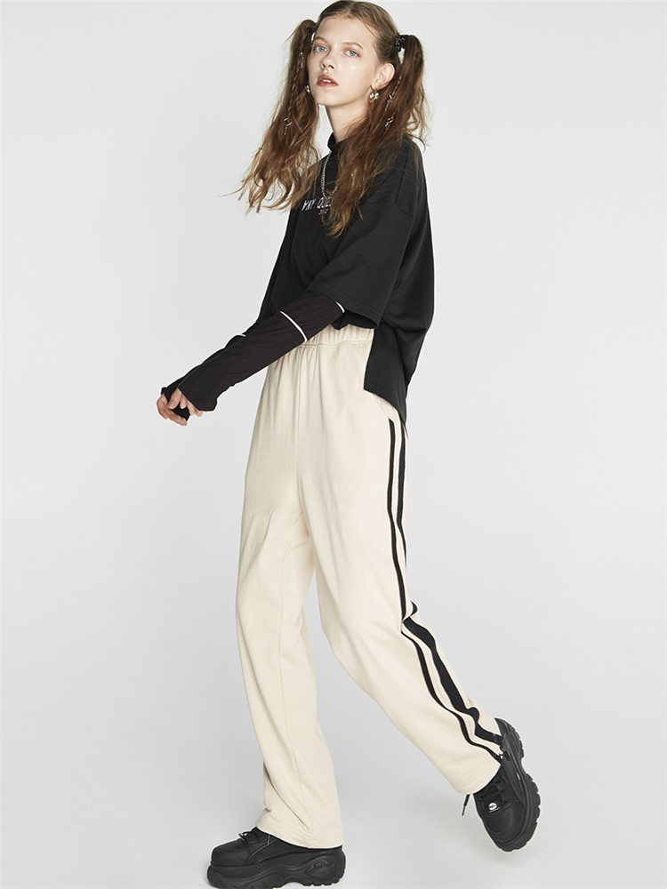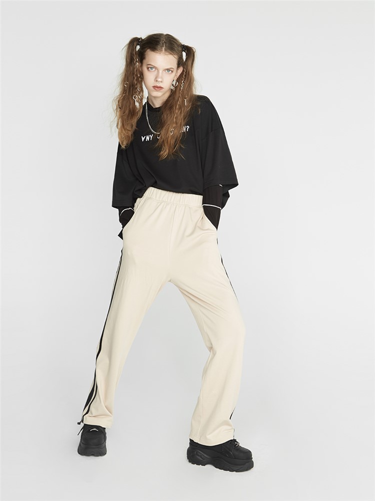 宽松直筒版型,修身显瘦,休闲运动风,时尚又百搭,腰部抽绳设计,方便穿脱,休闲裤,让你穿出大长腿。