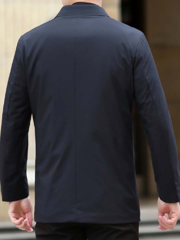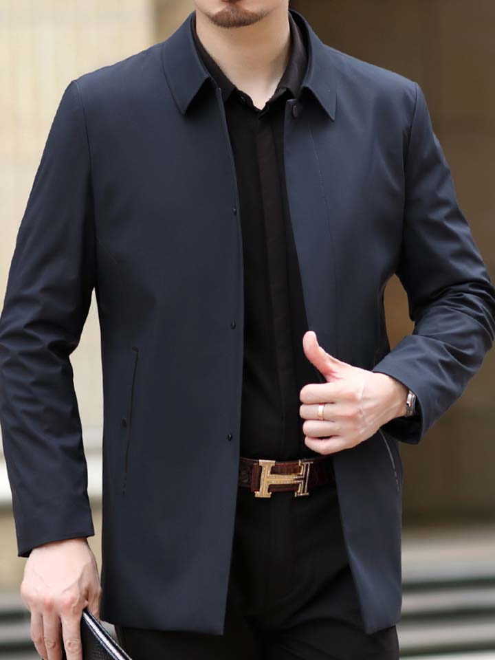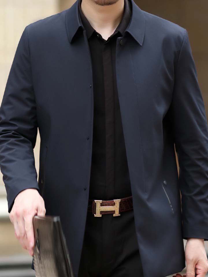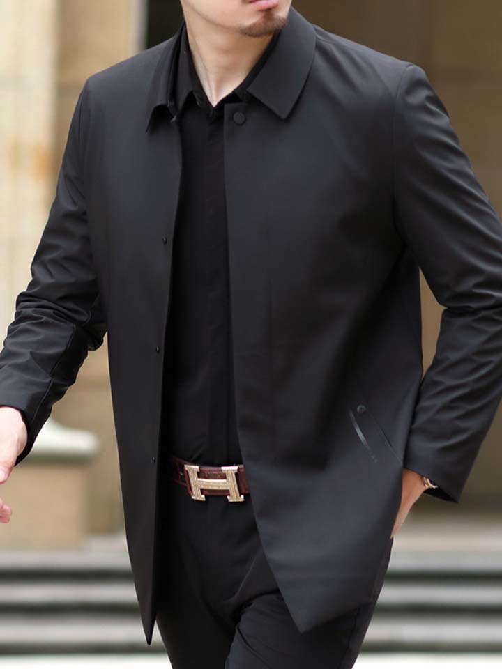 简约休闲风的风衣外套,个性翻领领型设计,不仅时尚感强,对脸型也有很好的修饰效果呢。长款版型,行走起来十分帅气。顺滑拉链闭合方式结合,防风性能强。