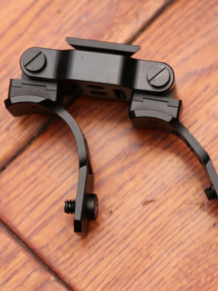 采用两侧镂空设计,支架两侧可以折叠,把夜视仪架在上面稳定牢固,可以完全的解放双手。出门携带非常方便。