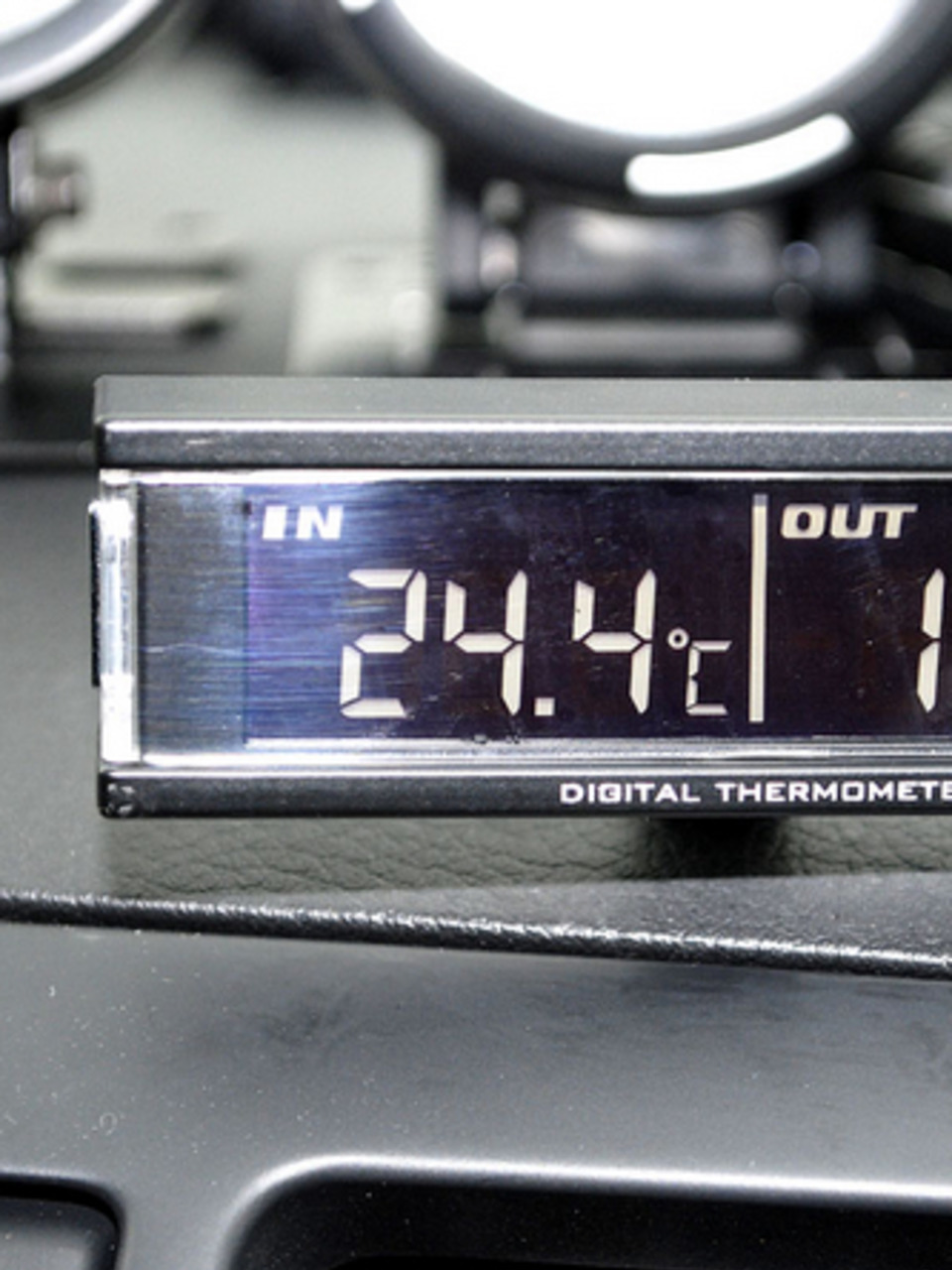 这款车载温度计精工机芯制作,精巧的设计可以让它使用更持久。它可以有效探测车厢内的温度,同时还能显示车外的温度。