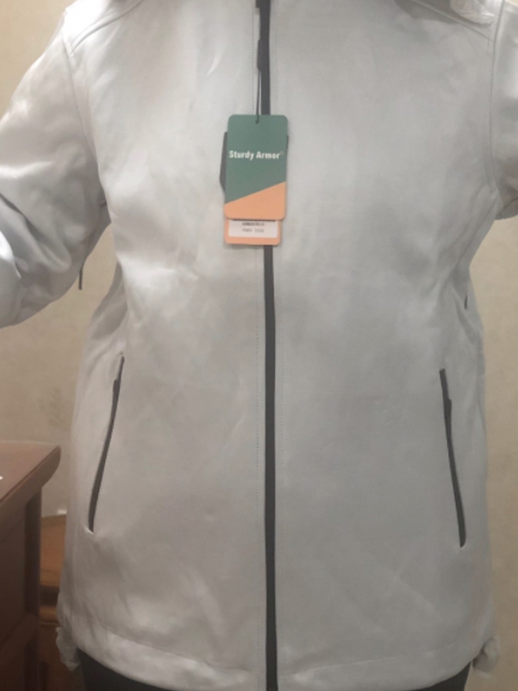 衣服很厚实,冬天可以当外套穿。 防护性能,用刀划测试布料,背后的纸板几乎没有划痕。用力猛刺,虽然背后纸板出现了凹痕,但是布料没有破损。防护性能过关。