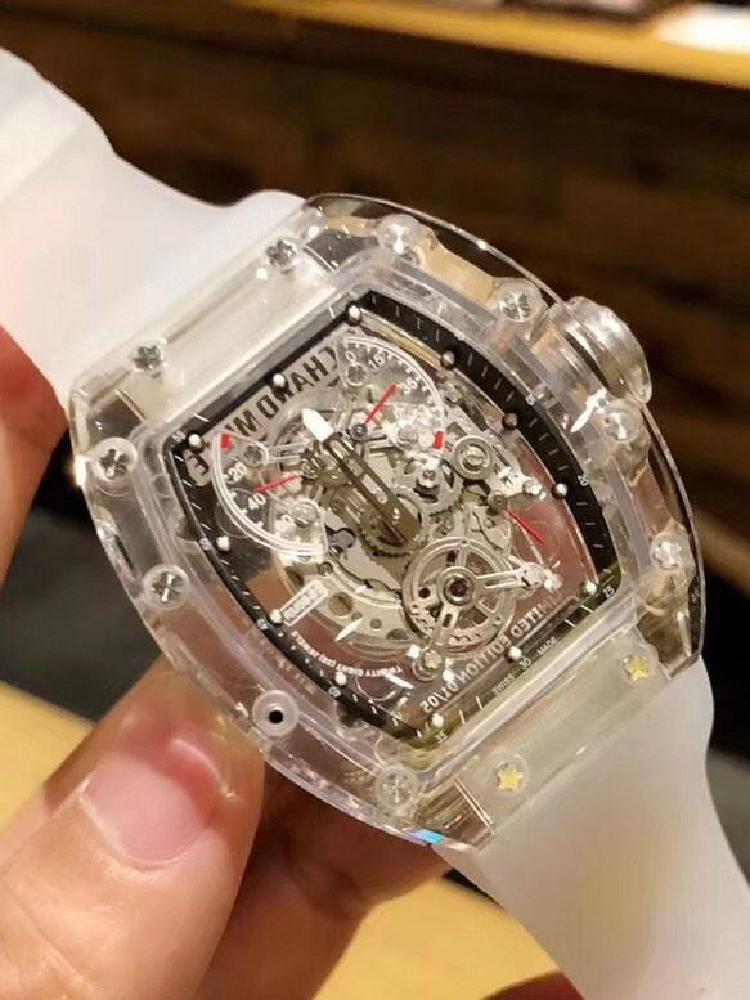 手表作为一款体现机械工艺美感的单品,干练自然的造型深受大众的喜欢。人工合成蓝宝石表镜,有着坚固自然的弧度, 它能够持久运行。内里加载了精良的机芯,续航能够持久有效。