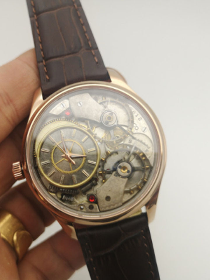 儒雅不失内涵,顺滑流线表框,尽散优雅魅力,透明底盖设计,让你直击机芯构造,感受科技的动态之美,金色修长指针,让时间轻易展现你的眼前,从此做个从容不迫的人。