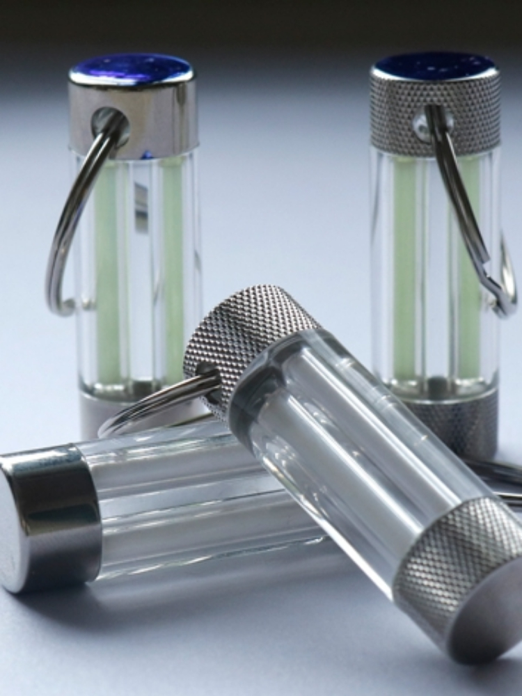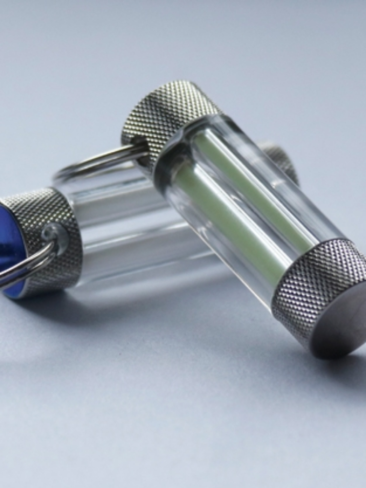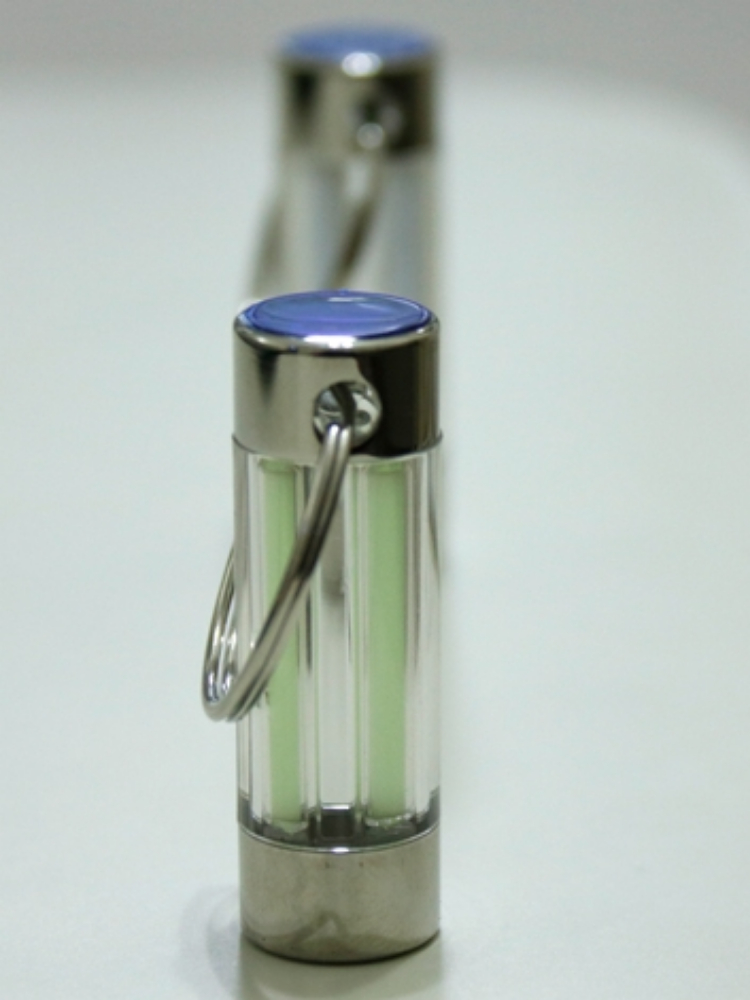 fyq 氚气管钥匙扣,亮度很亮,绿色亮度很高,想在顶上钻孔,金属是真的厚,目测大概2mm。