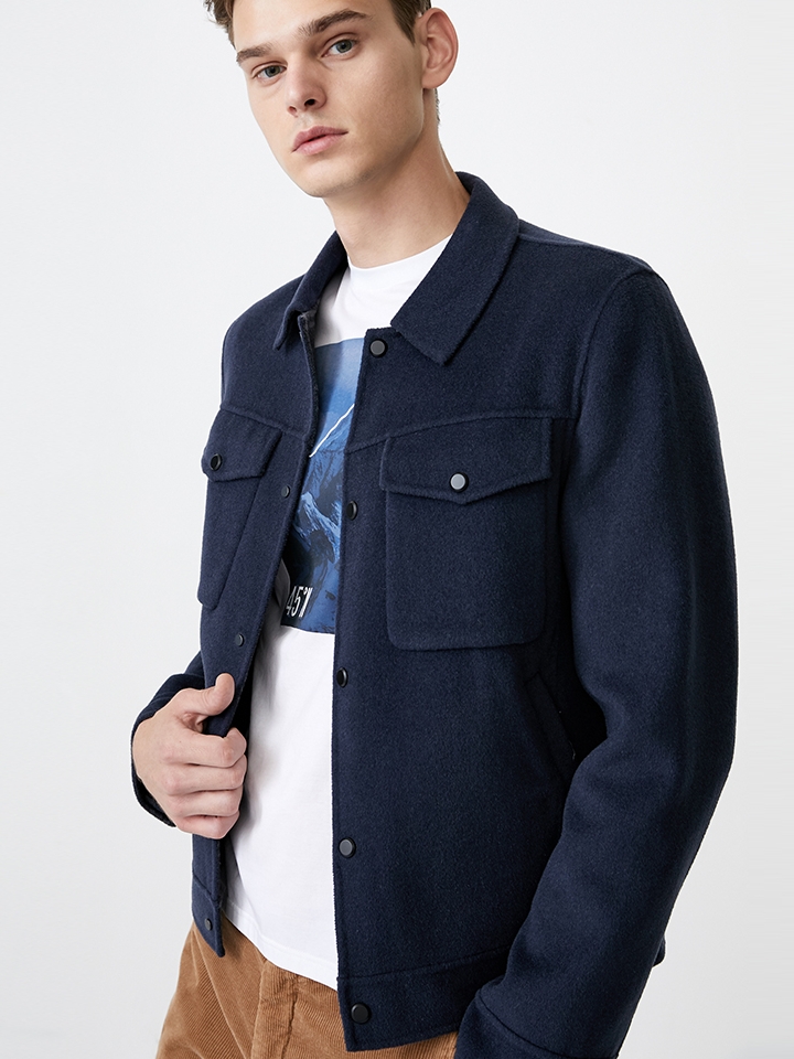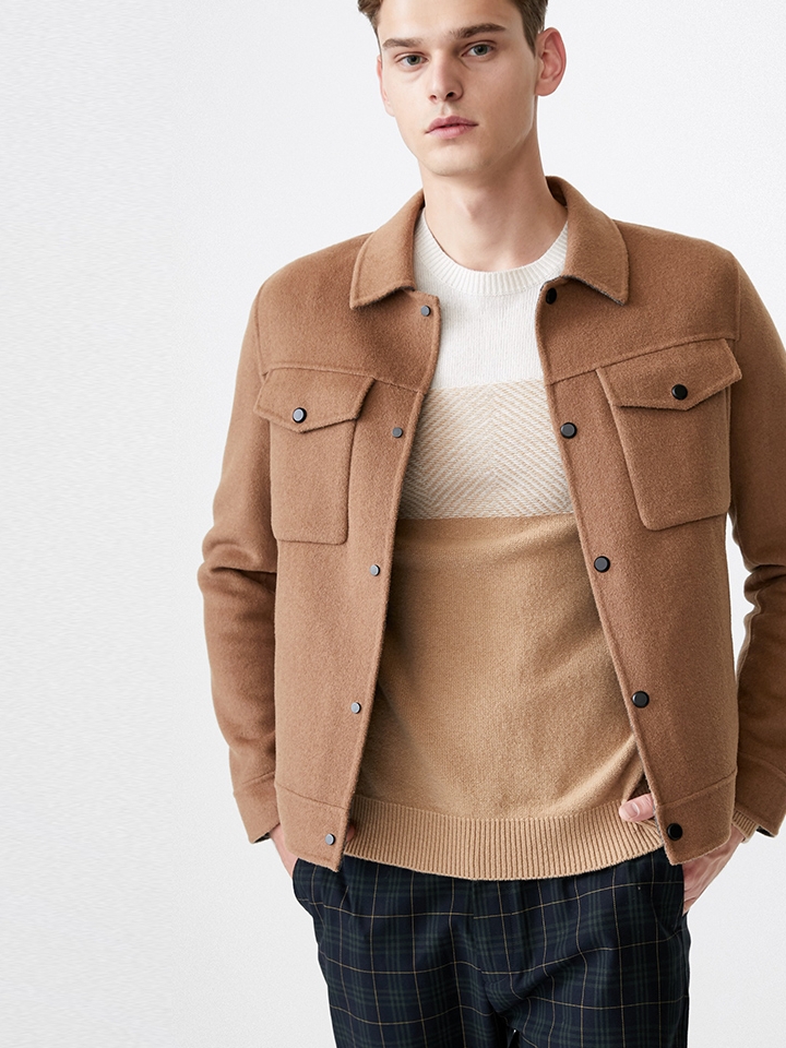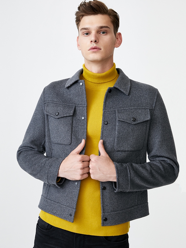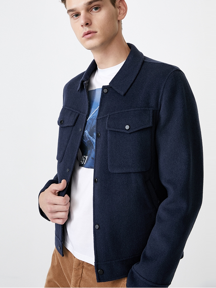 敞开式暗扣设计,穿着起来非常的利落帅气,极简的剪裁,搭配含羊毛成分的面料,保暖又不显厚重,简单大方的纯色调,透露出满满的硬朗与帅气。