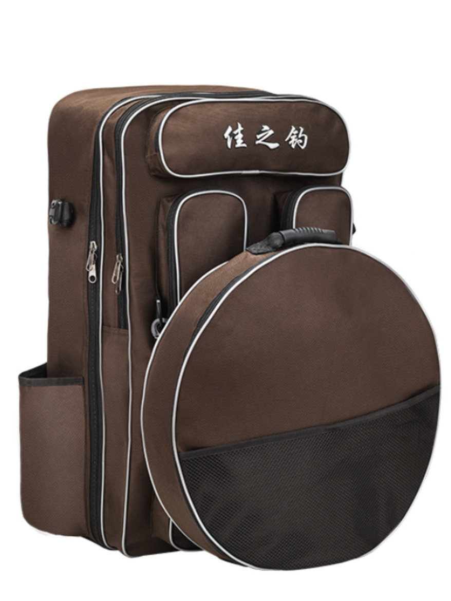 足足44L超大容量,科学的分仓结构,装载力强,取拿方便。结实耐磨聚酯纤维面料,表面防水涂层,经久耐用。自带钢管折叠椅,不论是户外旅游还是野外垂钓,都非常方便。