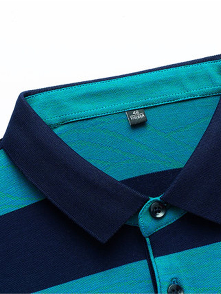 纯棉条纹POLO衫,休闲轻商务款式设计,适合成熟稳重的精英男士穿着。衣身采用条纹拼接,营造出丰富的视觉效果,平添几分都市时尚气息。