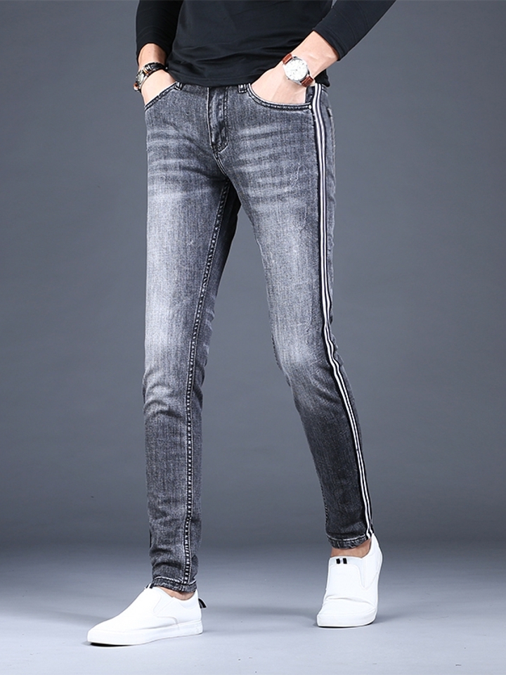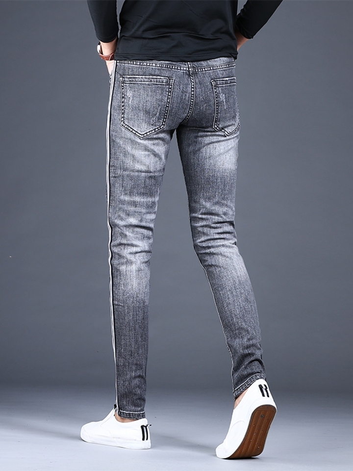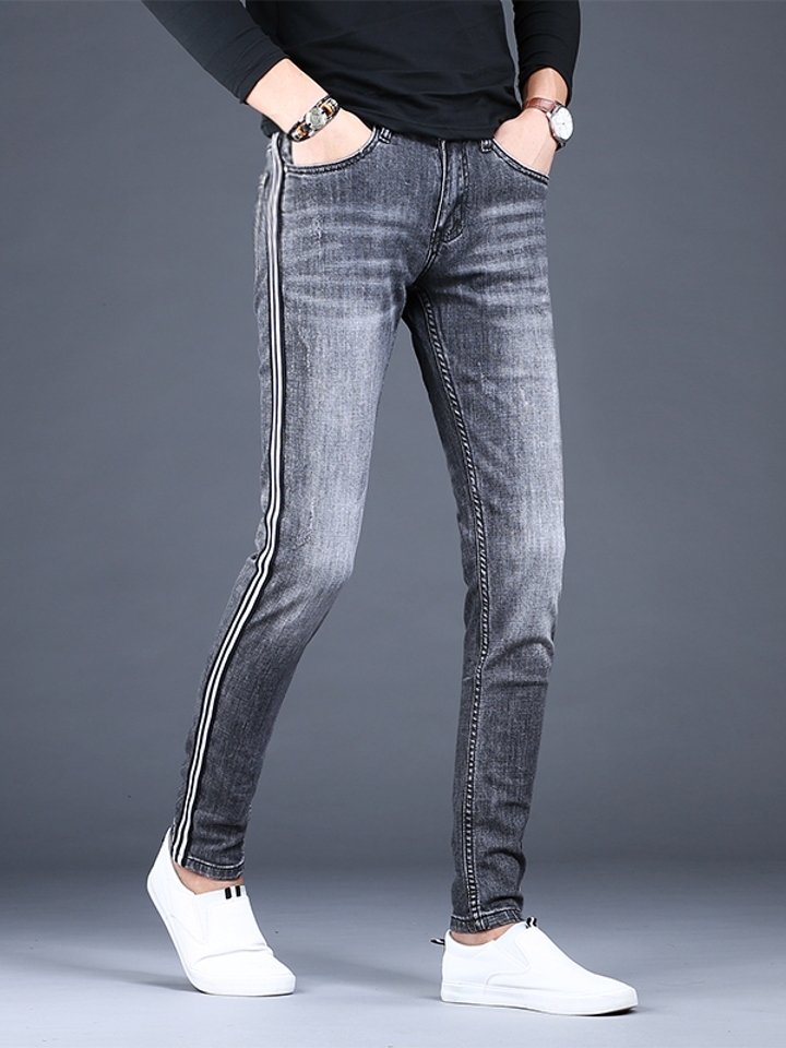 牛仔裤是永恒的经典,简洁的小脚裤版型,凸显出流畅的线条感,让运动不熟束缚,青春的你来一件牛仔裤尽情的展现你的活力吧!