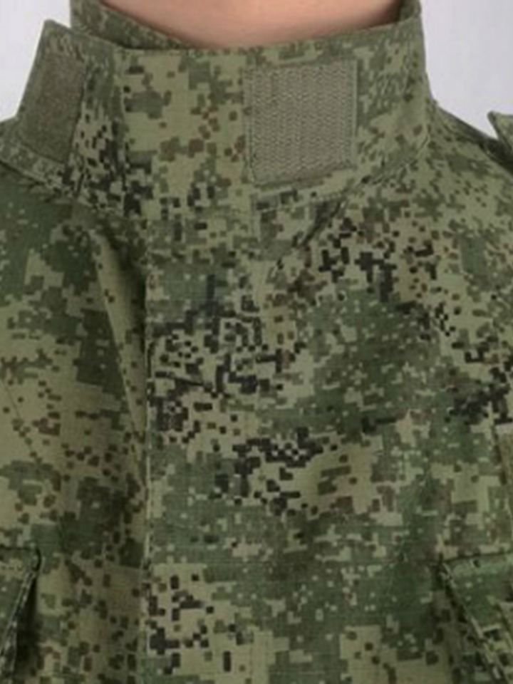 通用作战服,一套衣服可以同时满足几组造型需要。通过配置不同魔术贴配饰,出阅兵演习等勤务造型和小绿人造型搭配装具下场任意转换。BDU+ACU版型,吸收了两者优点,上衣肋侧纵向剪裁有一定修身效果,尤其适合有点将军肚的朋友,显瘦。