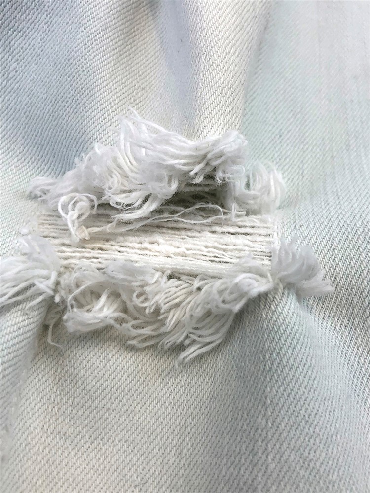 裤身破洞设计,个性时尚,九分长度,修饰腿部线条,小脚裤型,修饰腿部线条。