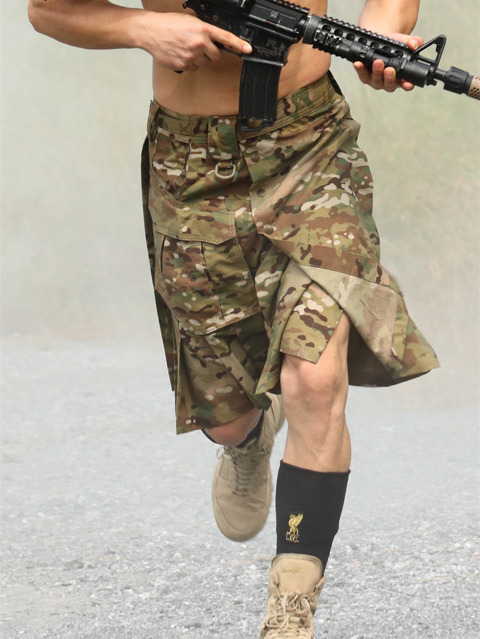 这款迷彩战术裙采用环保有机棉布纹布制作,时尚美观的迷彩印花色牢度高,拥有出色的舒适性和透气性。时尚的斜插袋设计,方便实用。