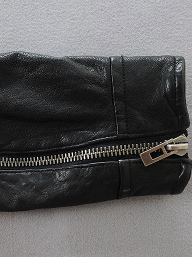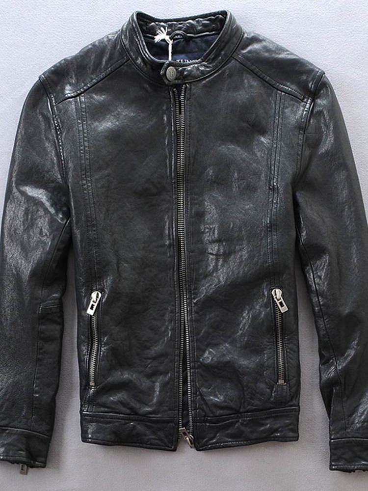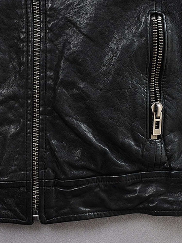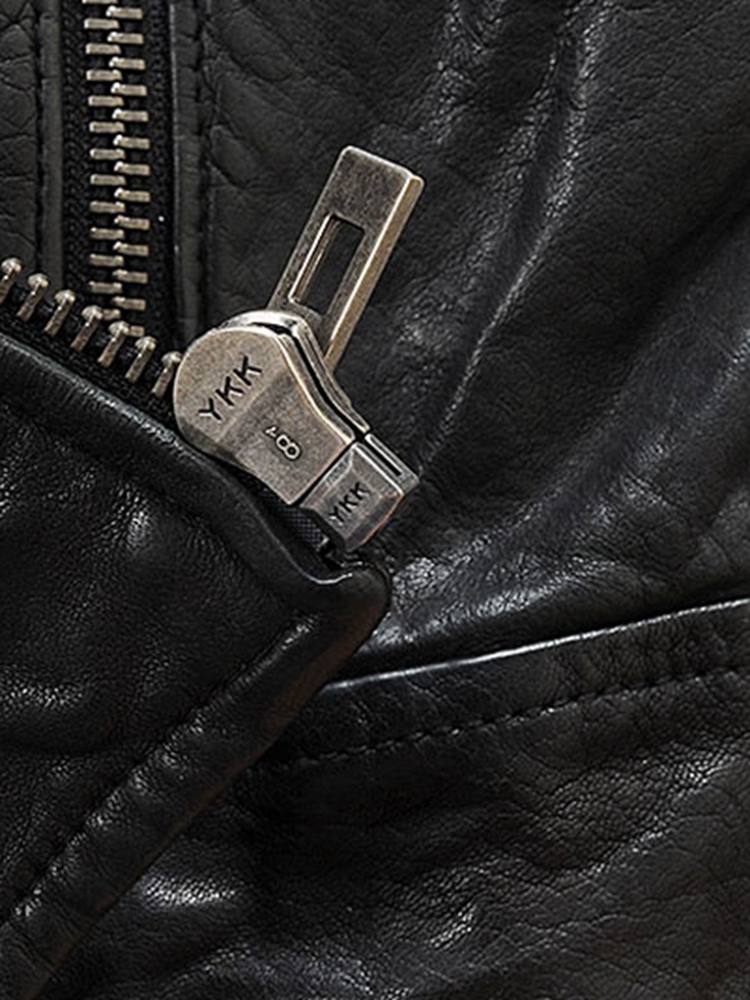 这件皮夹克选用新西兰进口小羊皮,质地细腻柔软,厚薄适中,弹性特别好,延展性佳不易被刮花,特别好打理。