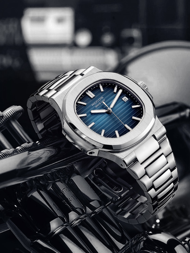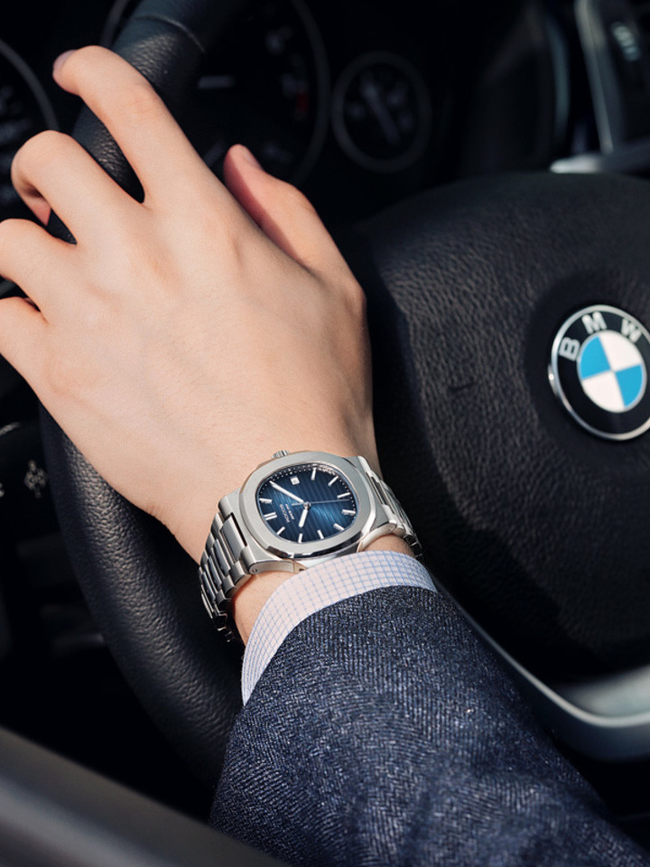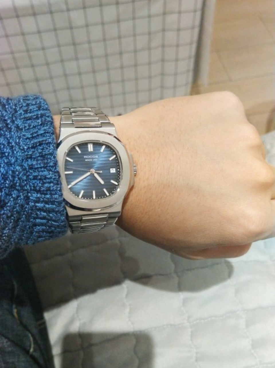 蓝银撞色的夜光腕表,显得神秘而又高雅,可以打造轻奢的高街穿搭。搭配深蓝灰色的毛衣,点缀清冷的文艺范。