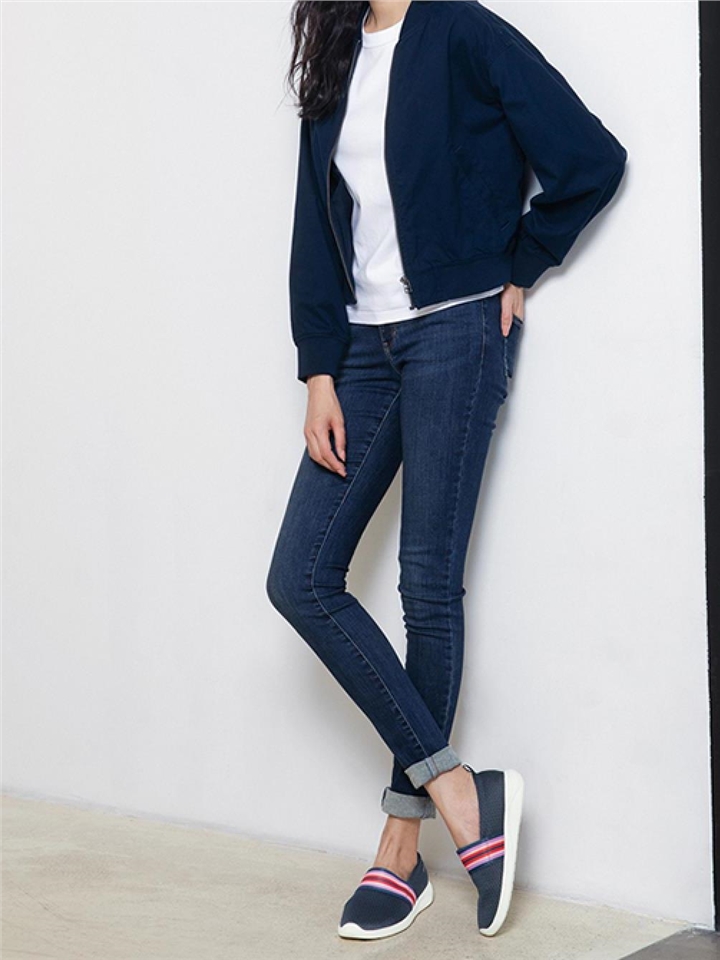 高腰的设计,拉长腿部线条,显瘦效果很好,高腰的版型,很显高挑,修身的剪裁,修饰腿部曲线,上身很有范。