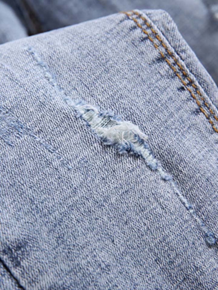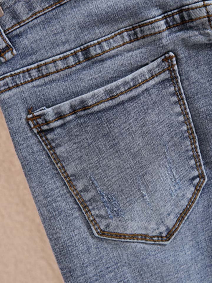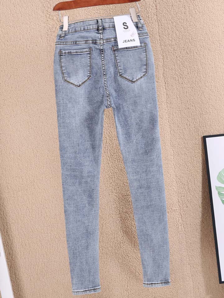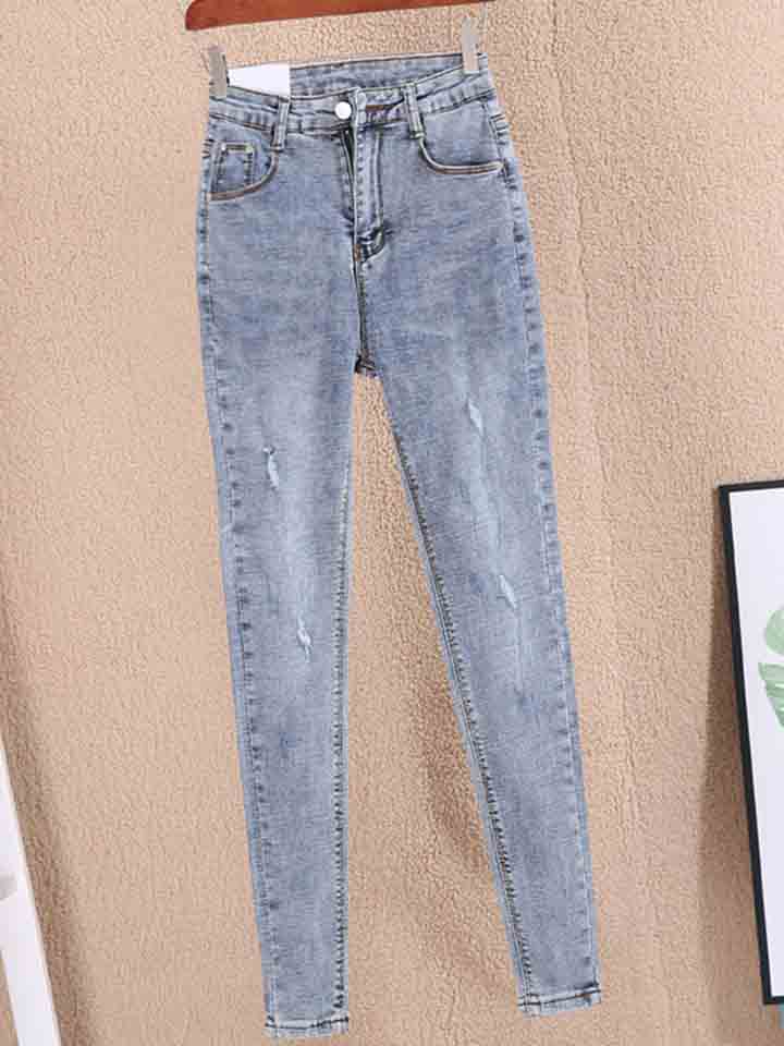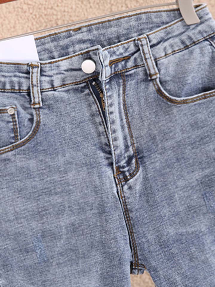立体修身使双腿看起来纤细迷人,也给人带来视觉上的影响,显得高挑优雅,无形之中能展示你的美丽,让腿部线条更苗条和有吸引力。裤子磨破的细节,增添着时髦气质。