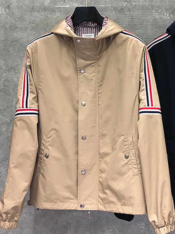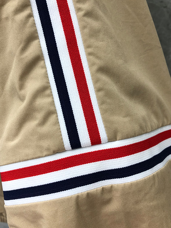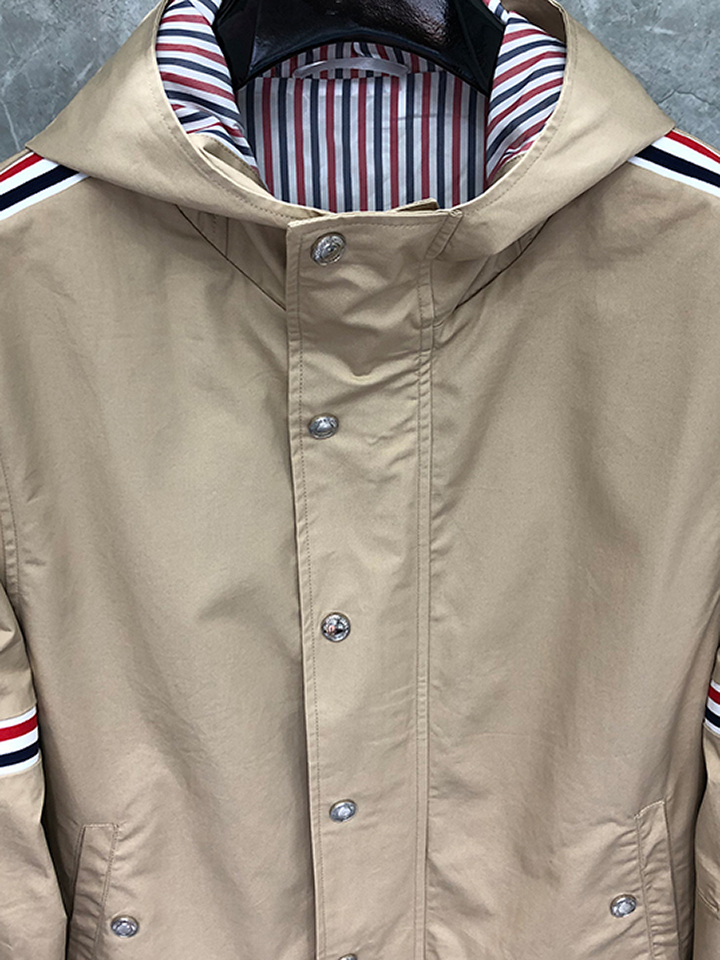 这件风衣以卡其色为主,简约大气,非常休闲,选色非常时髦、大气,袖子侧面有条纹装饰,使整件衣服有活力、不单调。
