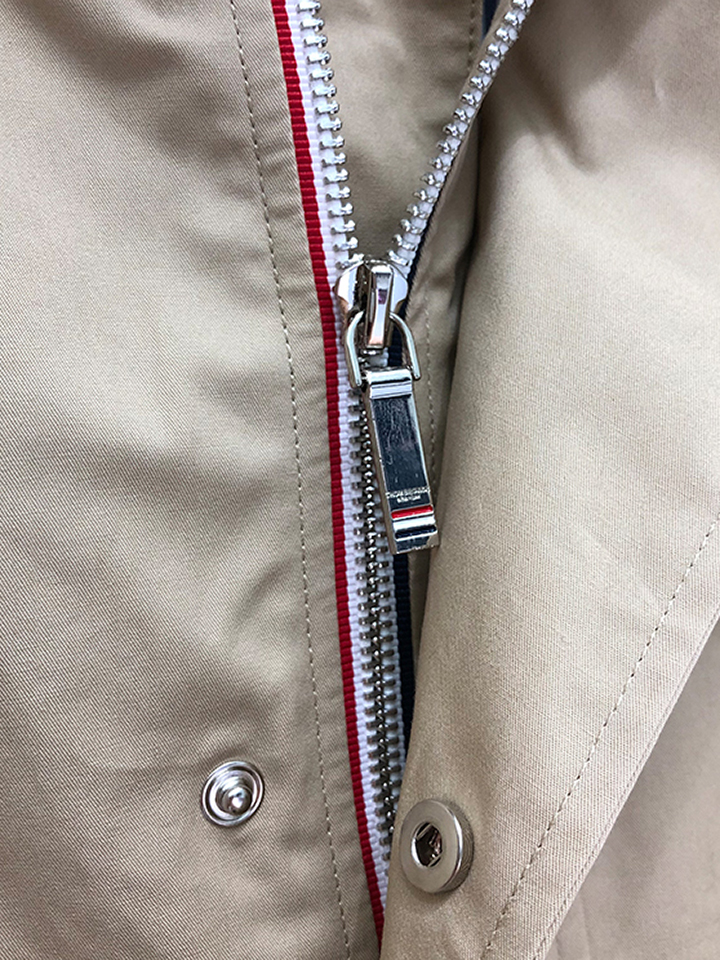 这款风衣在的拉链设计非常巧妙,既可以把拉链“藏”起来,更加美观,又可以很好地挡风,保暖性大大提高。