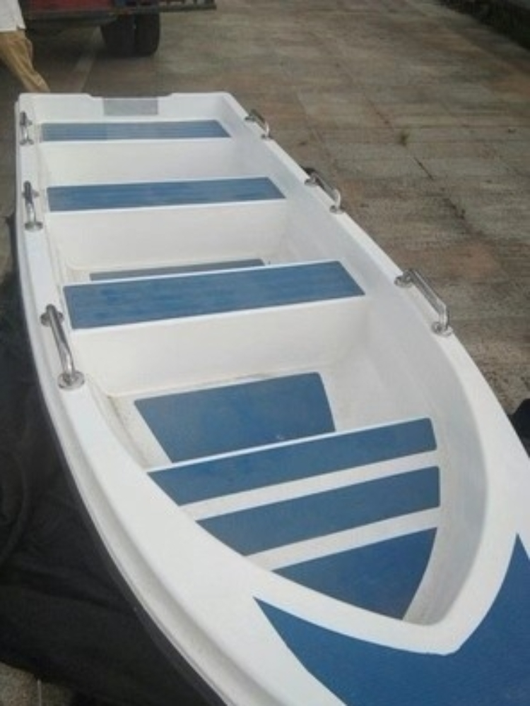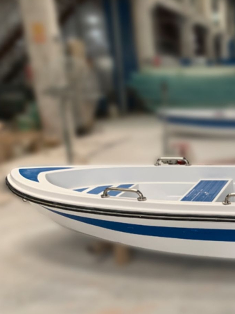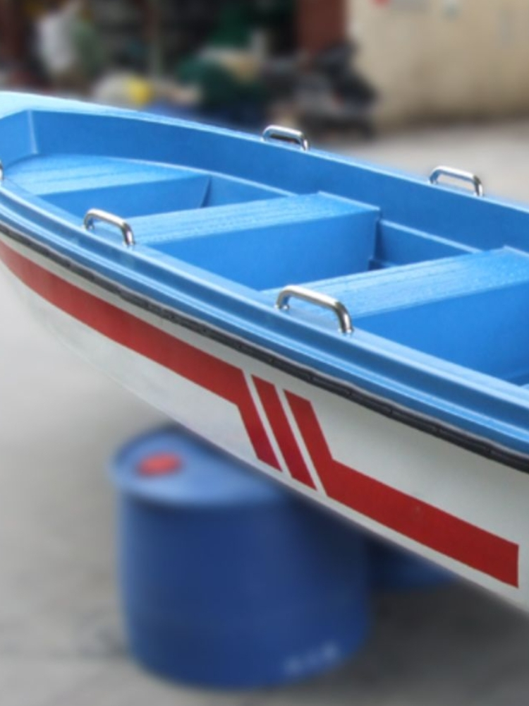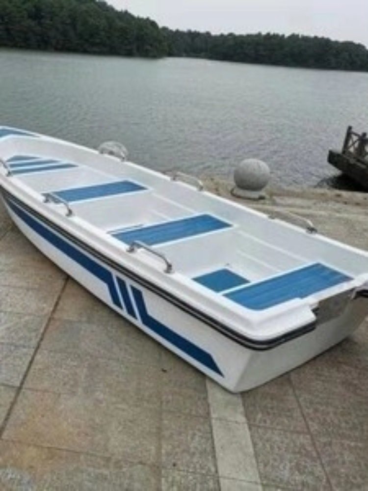 外观设计的十分简约,尖尖的船头搭配着简单的船舱,船舱最少 可容纳四个人,材质使用玻璃钢,看起来干净时尚。