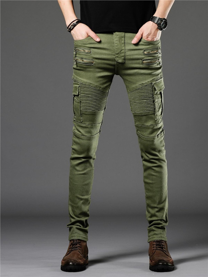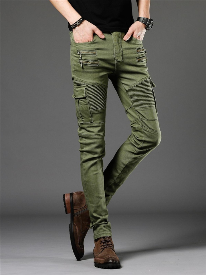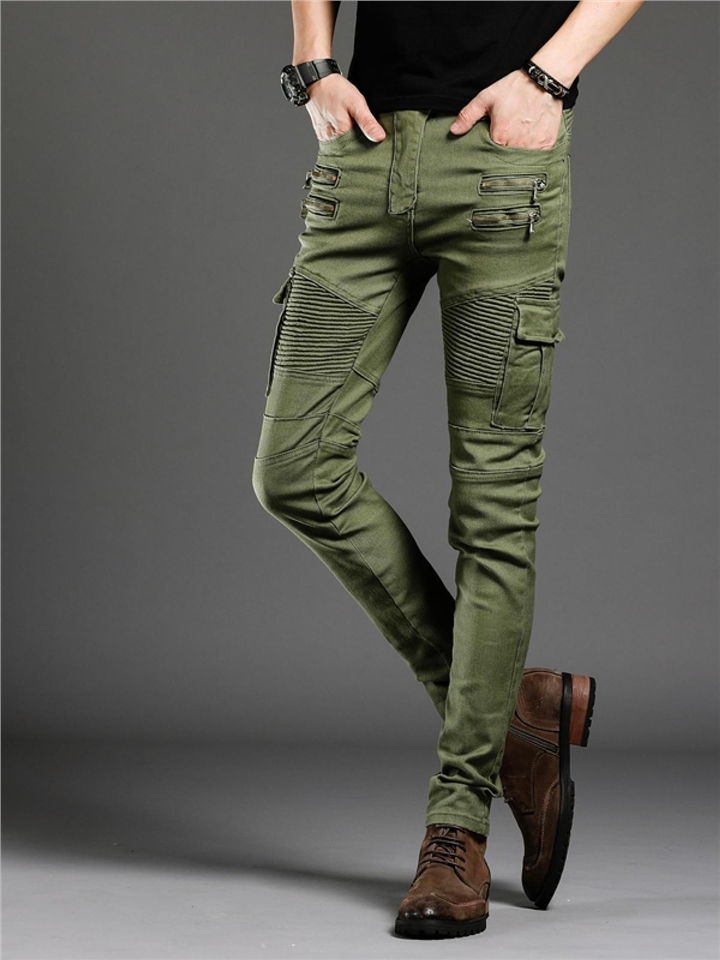 牛仔裤,穿着舒适不紧绷。军绿色设计,时尚感十足。修身版型设计,凸显身材。