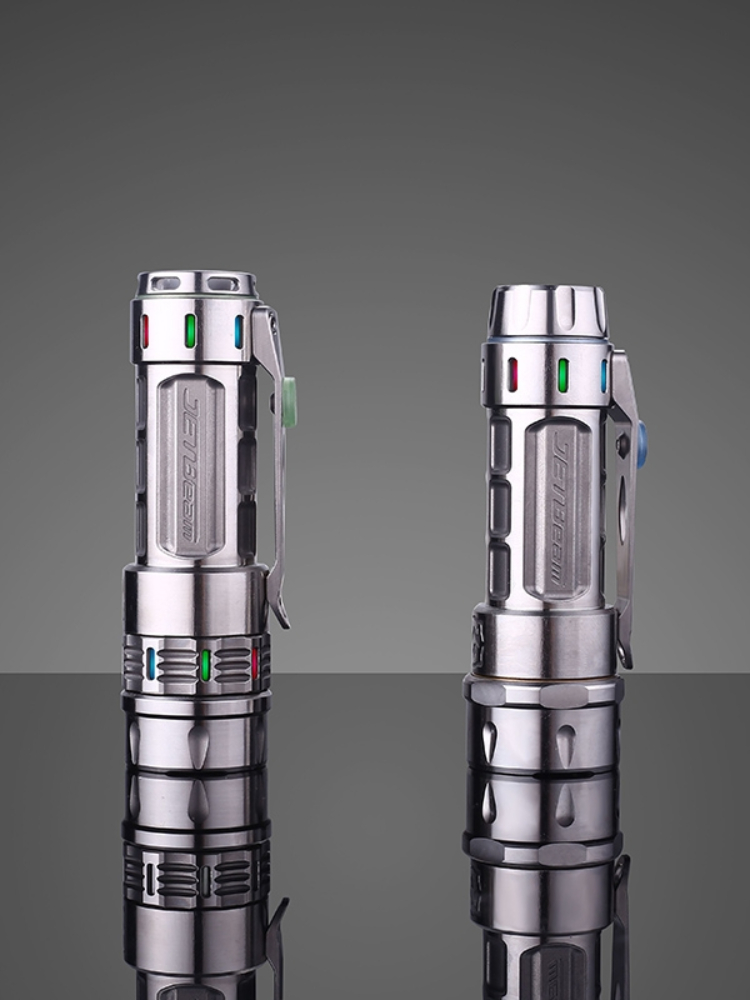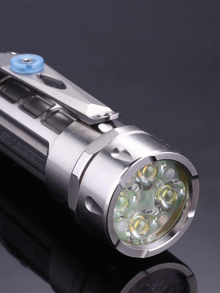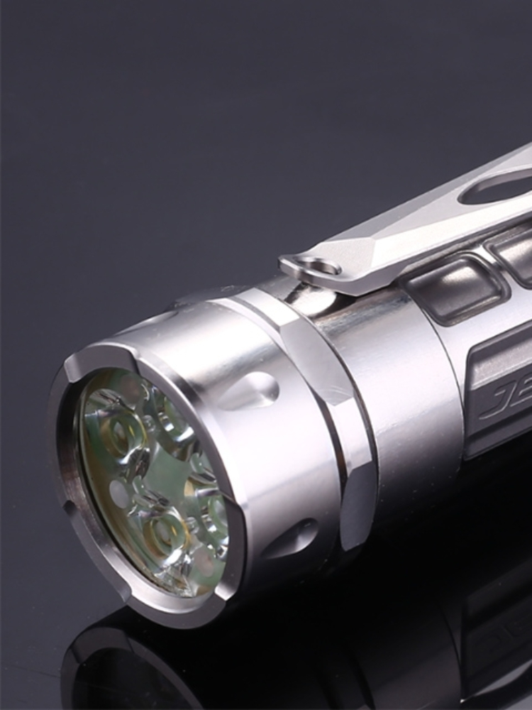 高品质钛合金筒身,轻量化设计打造轻便方便外出携带的一款手电筒;迷你身形让人眼前一亮,两档调光更加实用。