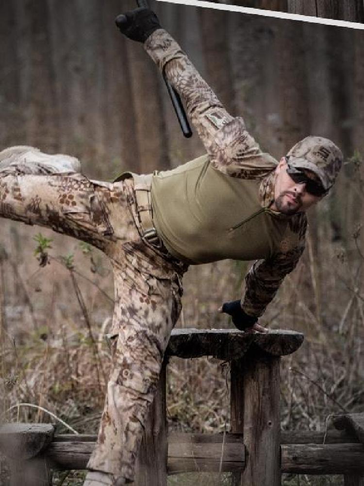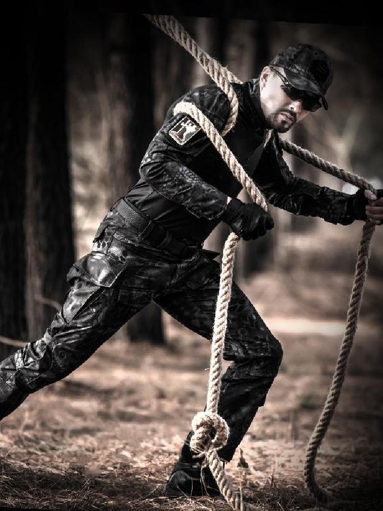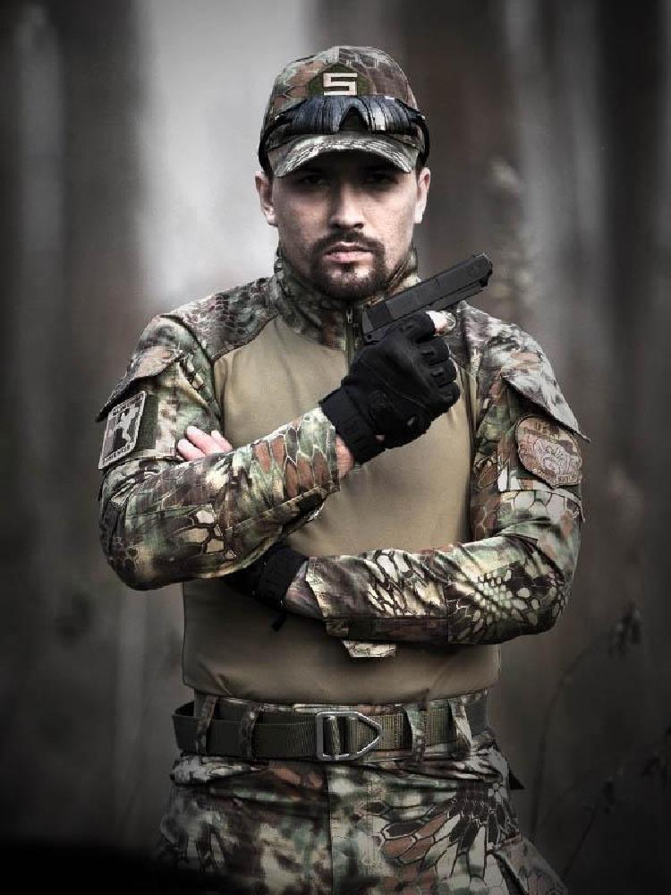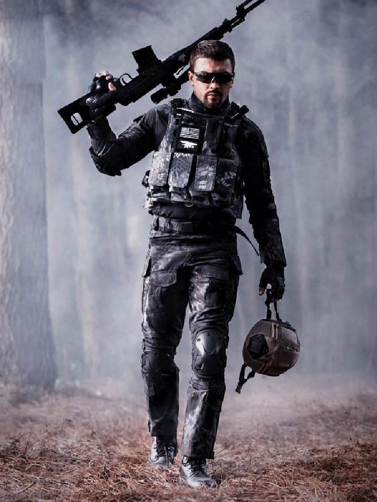 迷彩系列作战服,适合四季穿着。优选的科技型面料,防风抗水,防刮耐磨,经久耐穿。胸前加设的魔术贴设计,可以更换纹章与徽章。肘部添加的暗格,防撕裂,抗冲击,能够保护手肘。裤腿后端的魔术贴,可随时调节大小。多个大容量口袋,方便存放个人物品。
