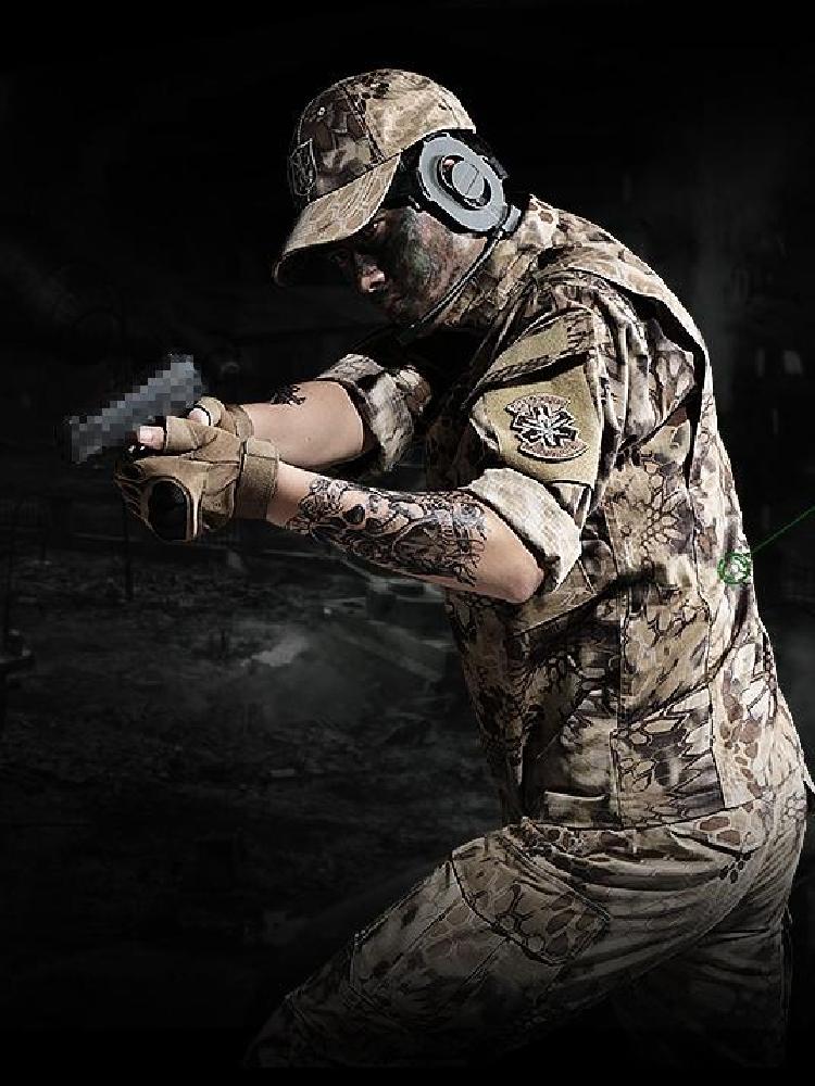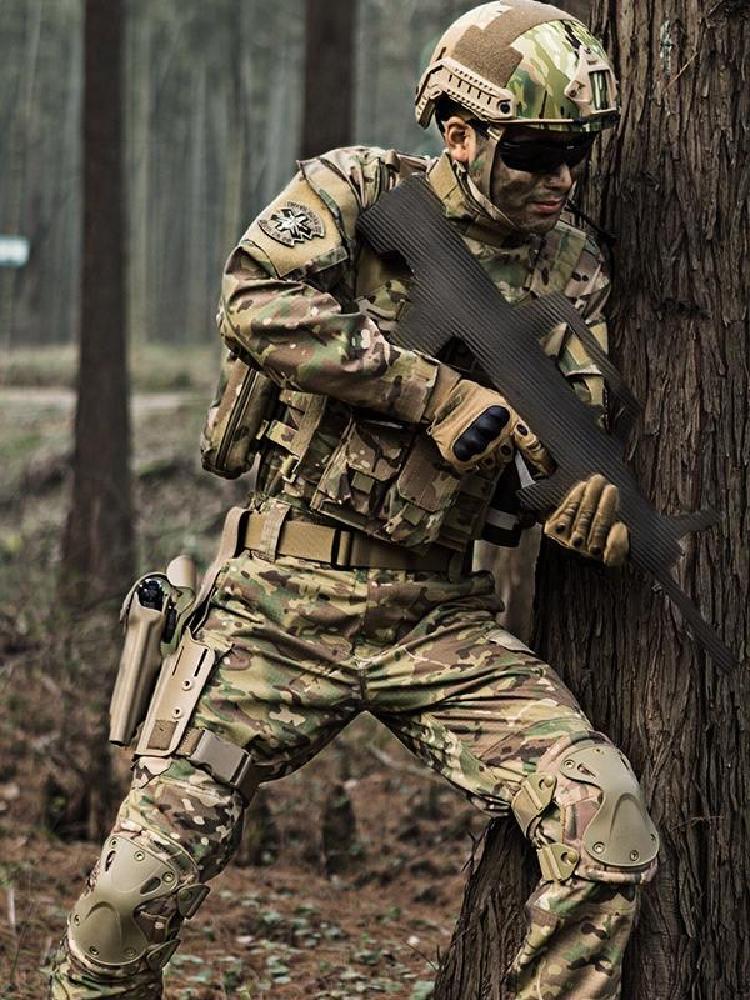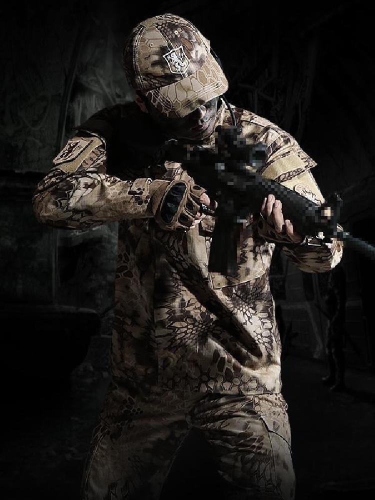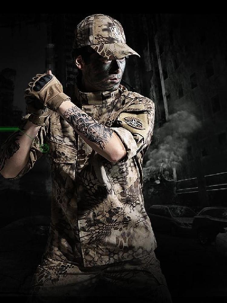 户外迷彩作战服,优质的面料,透气性好,排汗易干,采用高科技面料,经久耐穿不变形,抗撕裂性强,采用3D立体剪裁,穿着有型,更符合战术需求。
