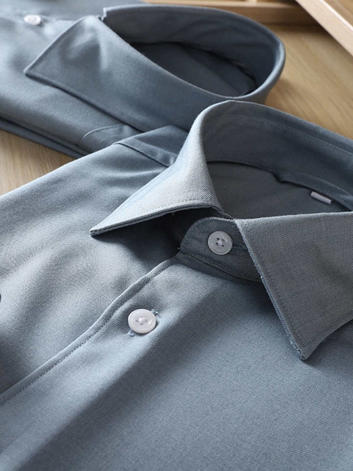 与普通衬衫的区别基本上也就在此。但,可别小看只是无领样式,却能带来绝对轻松惬意的感觉。简单基本的一款商务衬衫,在搭配裤子的时候,尽量选择款式及颜色比较简练、雅致的。面料很好,很有质感,稍有弹力,衣长到脚踝,很显瘦~领子很有立体感,颜色靓丽,后背有加层,非常有范儿。是春季商务型男的必备单品。