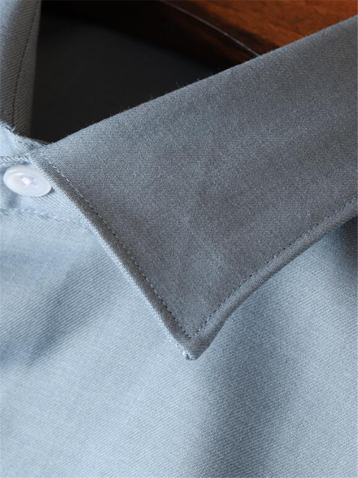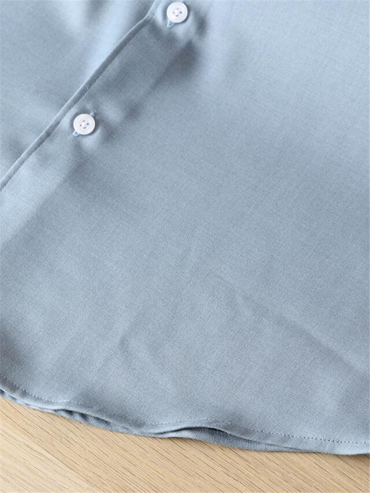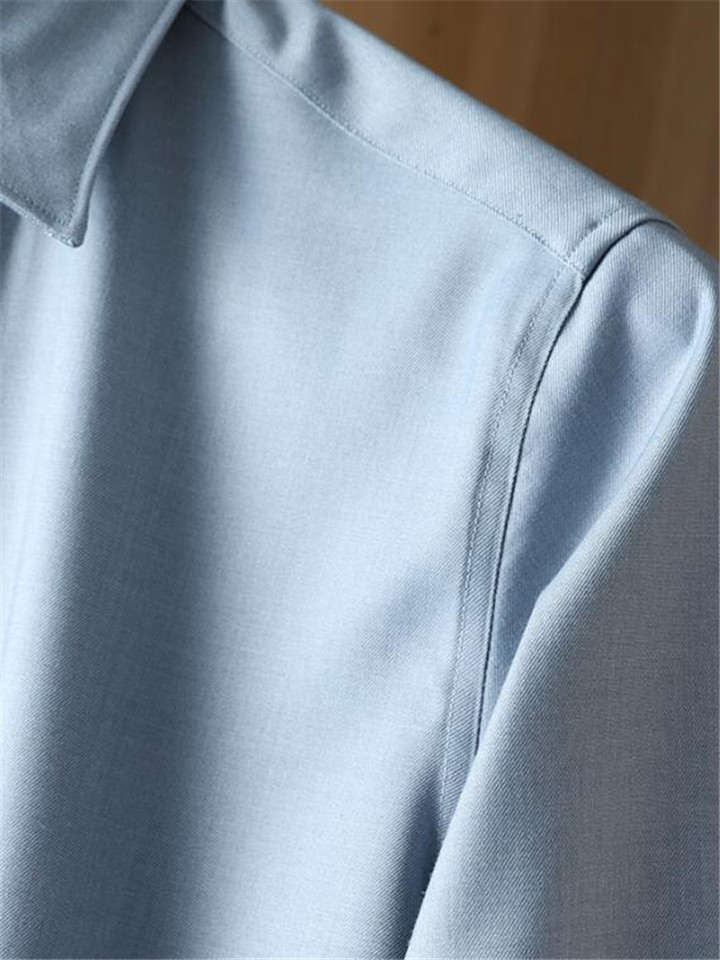 翻领衬衫,再简洁不过的设计却呈现出大简至美的优雅与干练,清新的浅蓝色活力十足,手感细腻展现美好的层次感,简单的小立领让颈部线条修长有型,贴合身材曲线展现美好的质感,贴合身材曲线展现完美的身材,修身版型贴合身材曲线,充满美好的质感,搭配上一件时尚的五分裤,帅气有型。短款的版型让身材比例更美好。