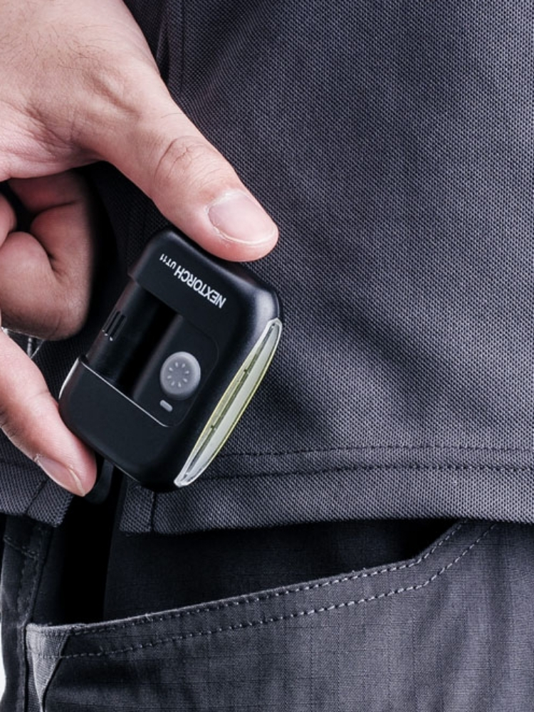 轻量化设计,迷你尺寸,含电池仅重46.8克,携带方便零负担;采用COB“面”光源,大面积柔和泛光照明,视野更广阔更舒适