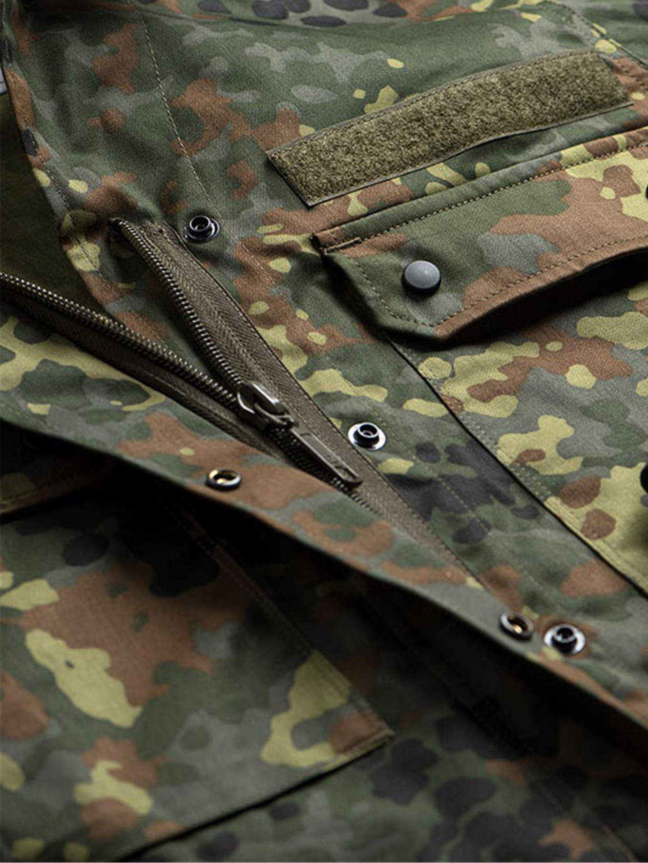 经典大气的拉链男士夹克,演绎不变的军旅情怀。应用人体工程学立体裁剪技术,让夹克更合身,有着舒适修身的良好效果。100%纯棉的运用,使衣服有着超强的抗撕裂,透气防风的效果,适合在户外进行的各种运动。追求时尚军迷风,把潮流与个性穿在身上。