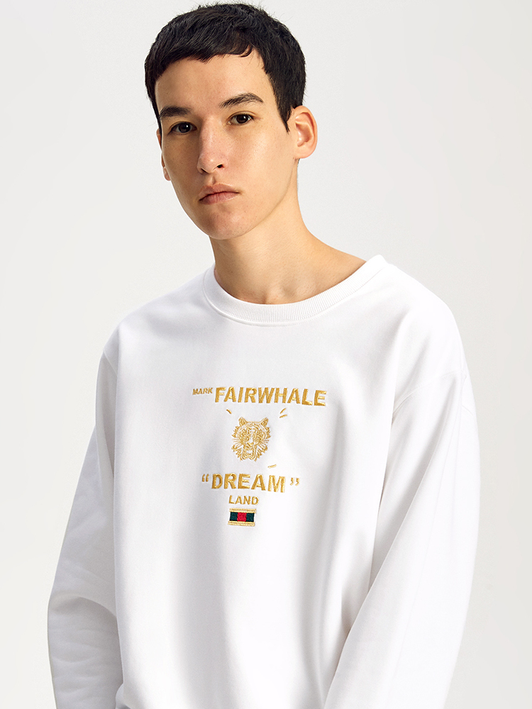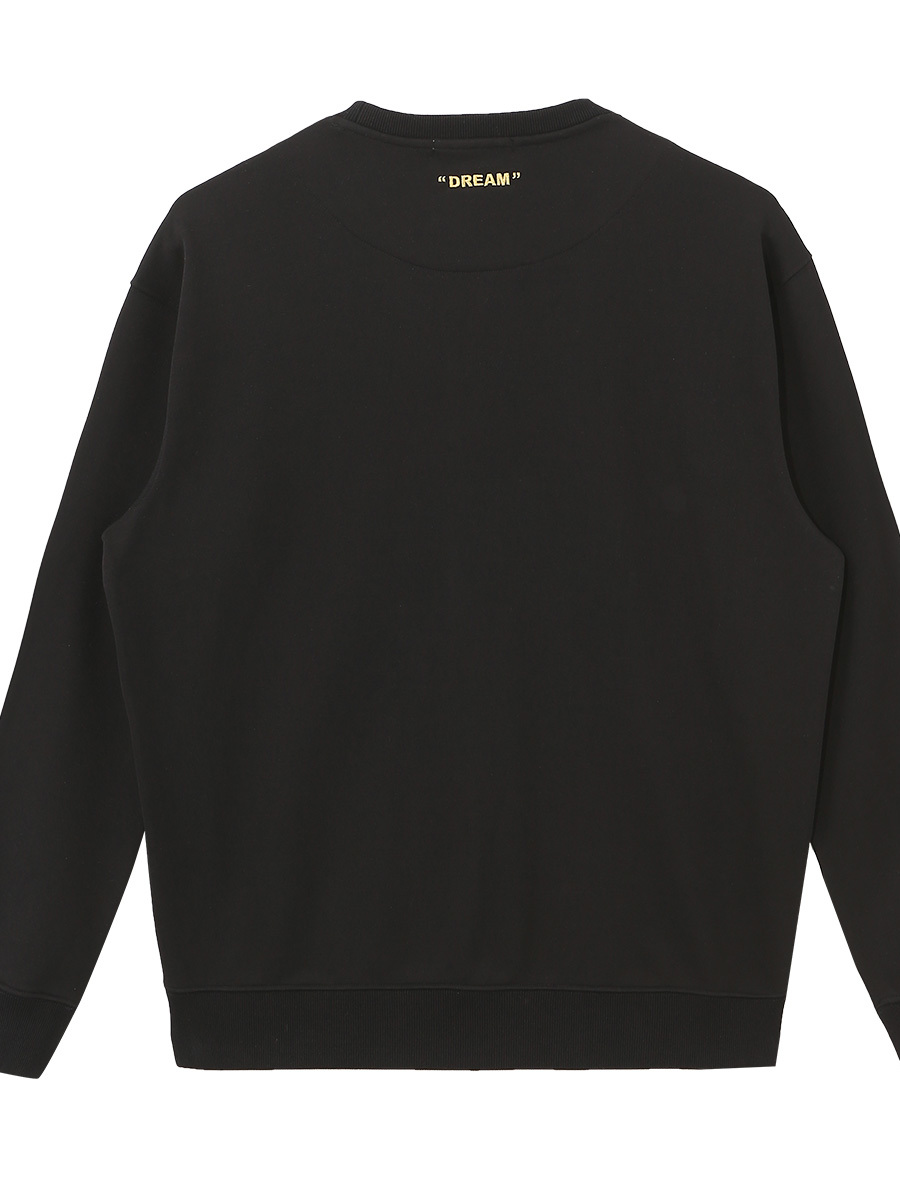 这款卫衣采用圆领的设计,很好的贴合脖子的线条。搭配一条黑色的休闲裤和一双运动鞋,裤子最好是束脚的,可以显高哦。