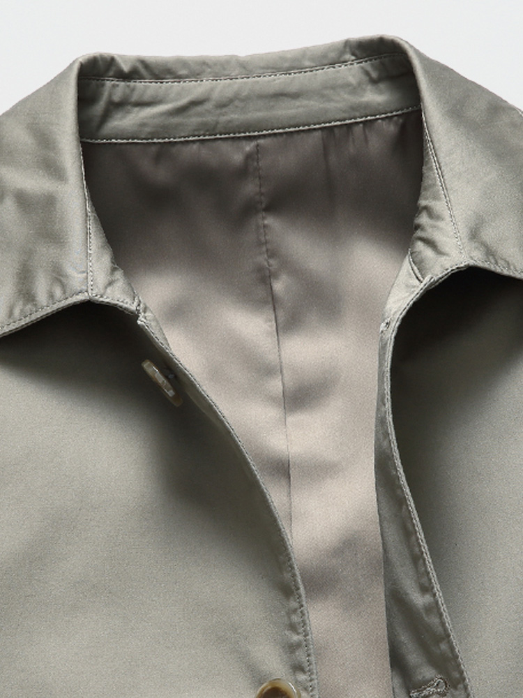 纯棉的材质打造,让这款风衣有着柔软舒适的手感,上身亲肤效果佳。而质感纽扣的门襟方式,尽显绅士范,细腻的走线,带来出色的品质感。