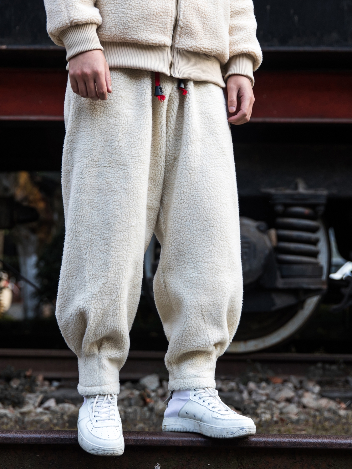 超厚实的一款休闲裤,内里厚厚的羊羔毛拼接,更加温馨保暖。哈伦的版型,保暖不显臃肿,穿出独特的运动风格。